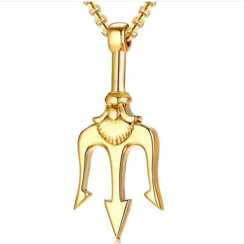 Vintage Geometric Aquaman Trident Pendant Necklace for Men