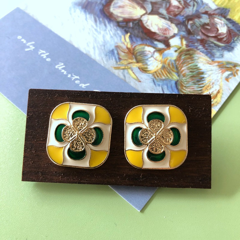 SQUARE COLOR-BLOCK SILVER PIN STUD EARRINGS 2CM
