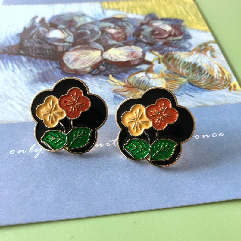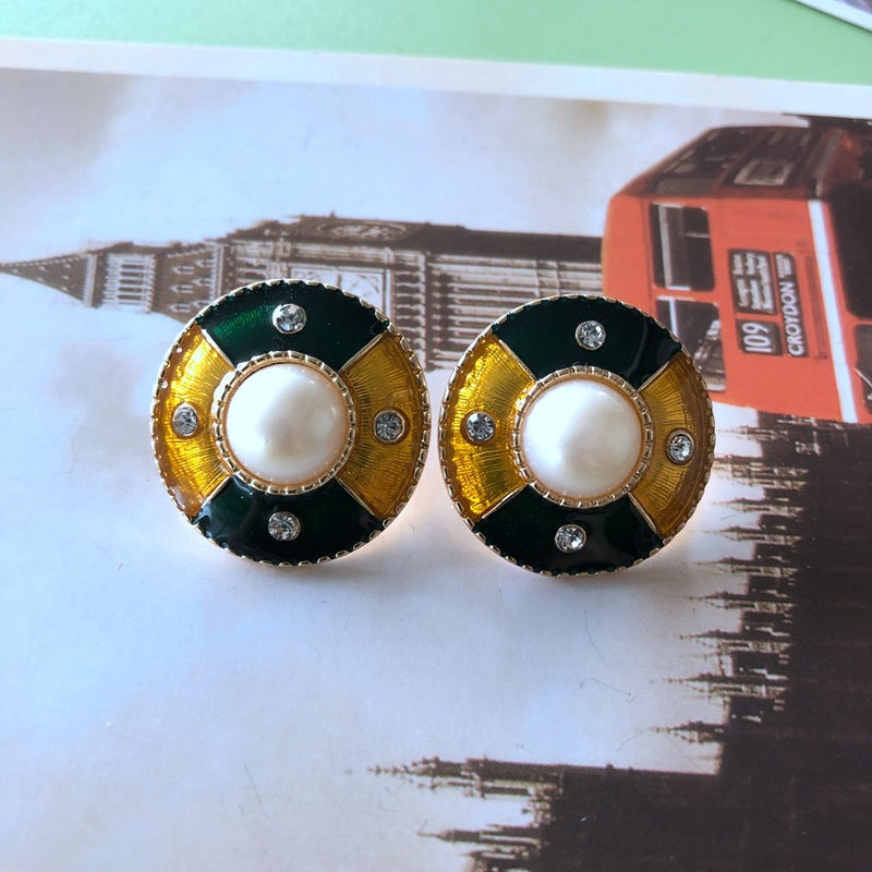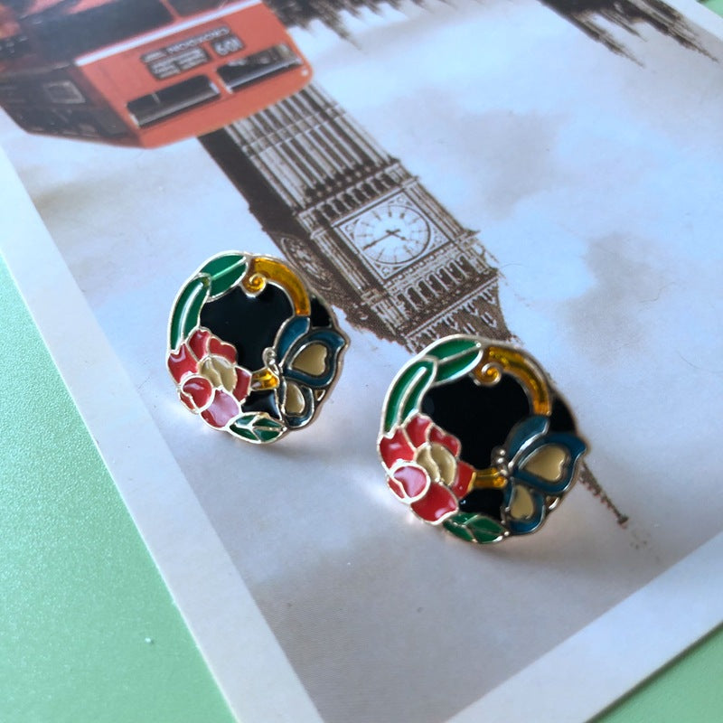 Oval X drop glazed silver pin stud earrings 2.5*2CM