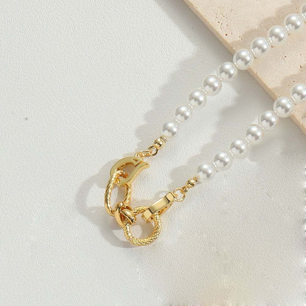 Vintage Double Ring Glass Pearl 14K Gold Plated Women's Necklace