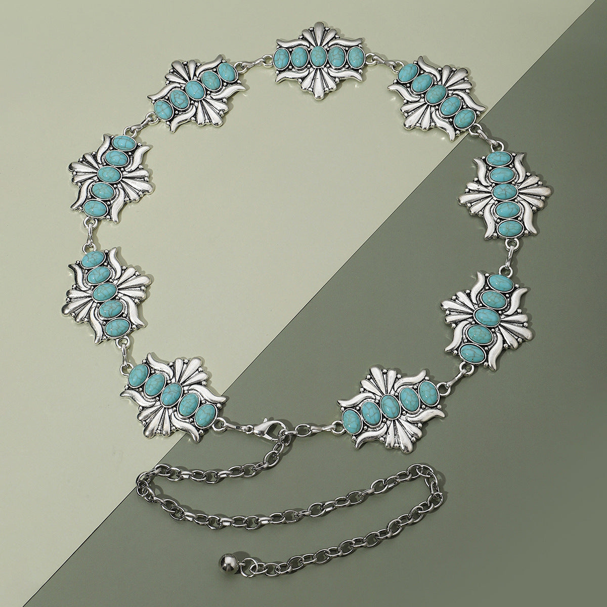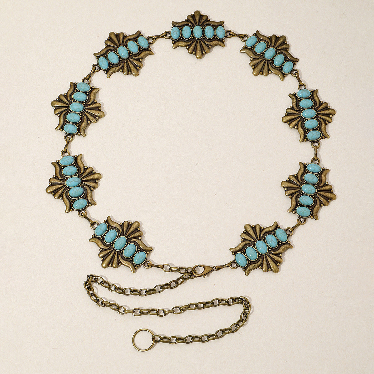 Vintage Bohemian Geometric Zinc Alloy Turquoise Inlay Rose Gold/Silver Plated Women's Waist Chain