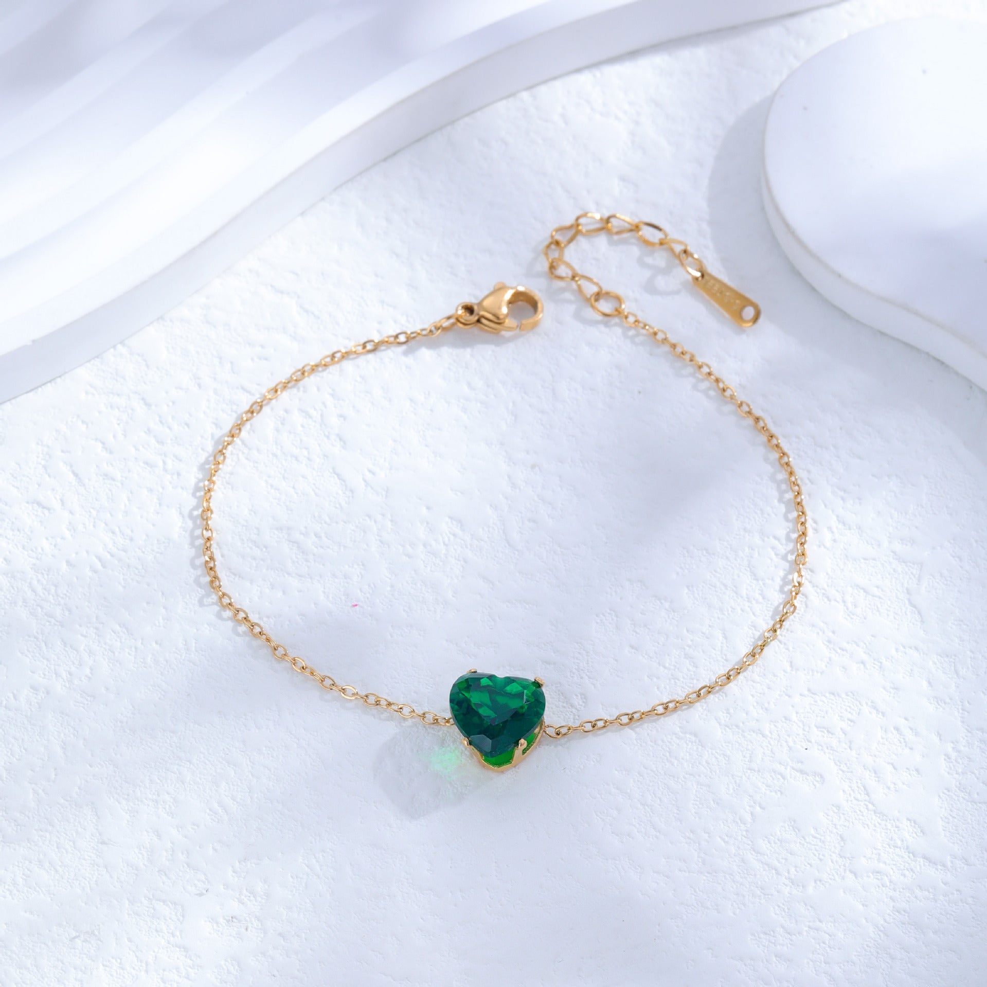 Vintage Green Heart Titanium Steel Zircon Bracelet 24K Gold Plated