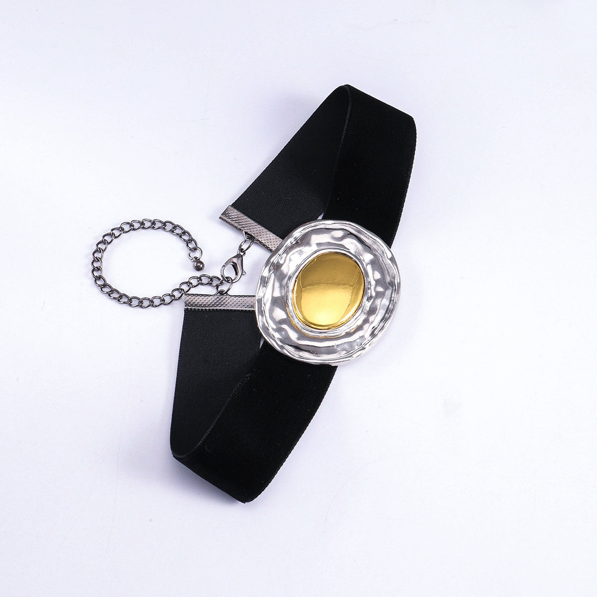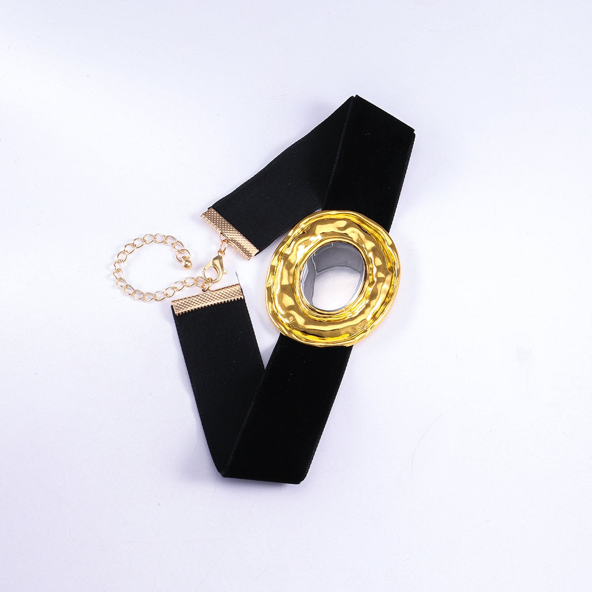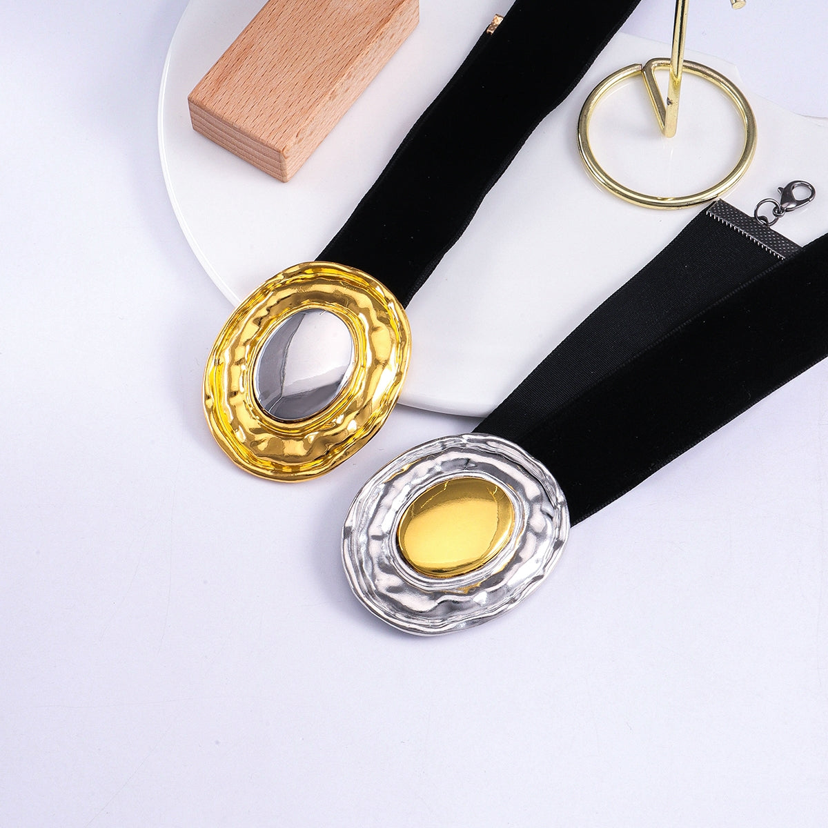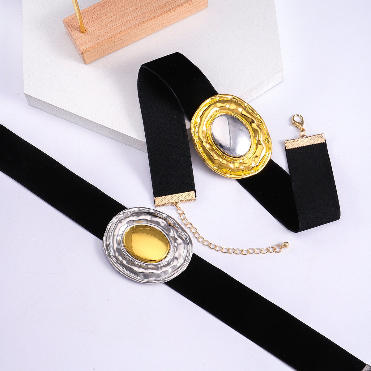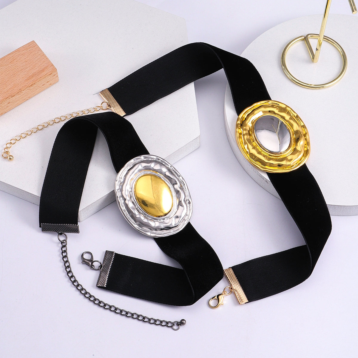 Vintage Oval Alloy and Leather Women's Choker Necklace