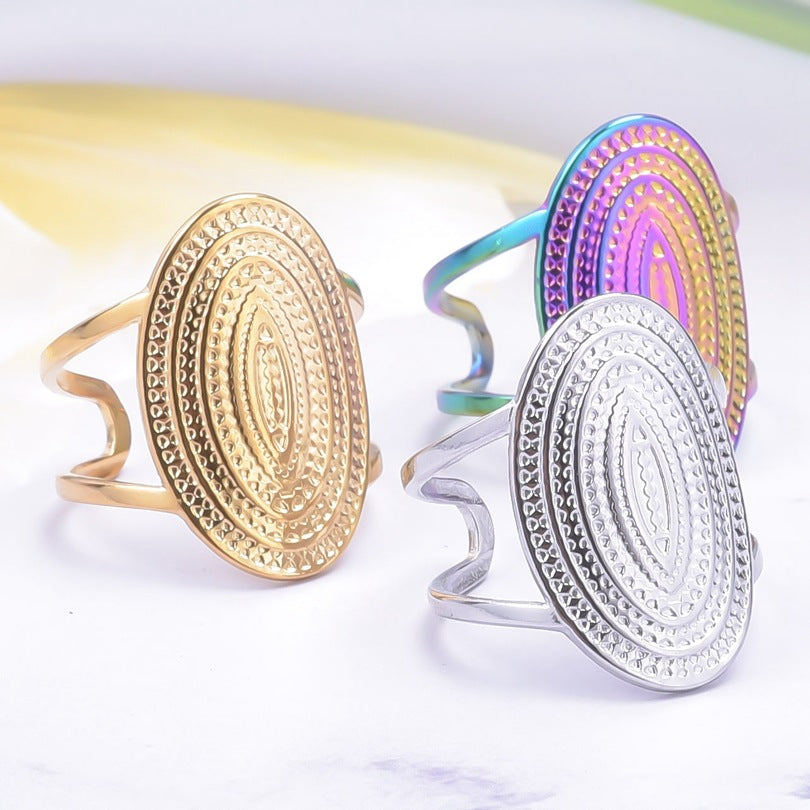 Geometric Titanium Steel Adjustable Open Ring for Women and Men