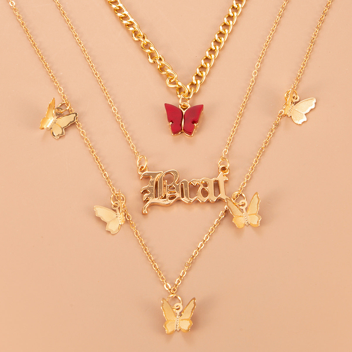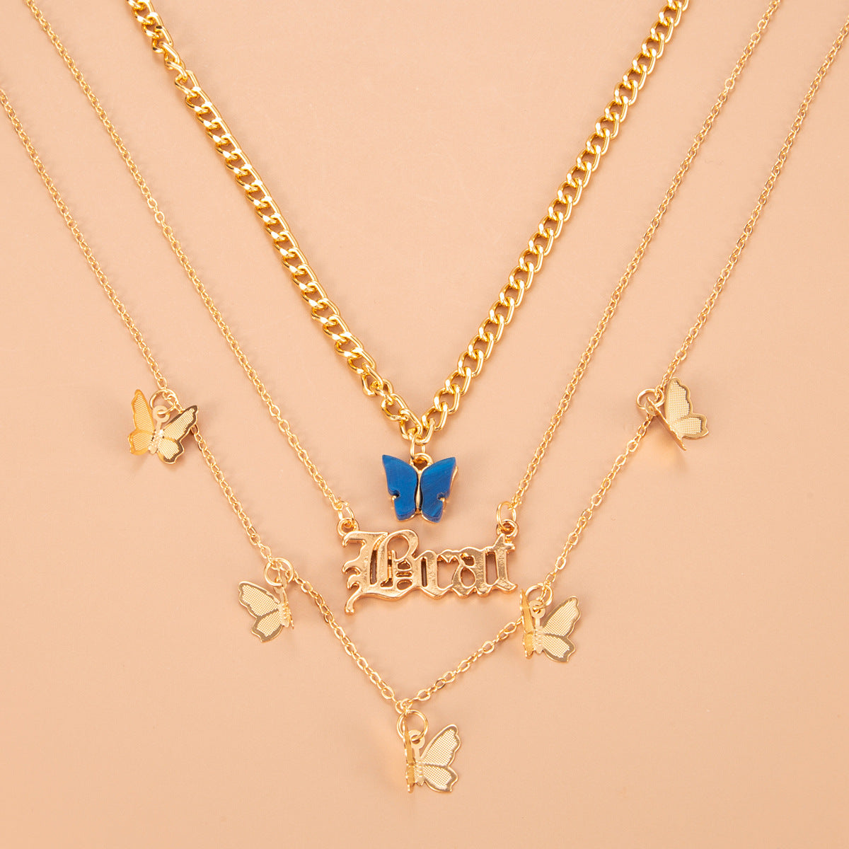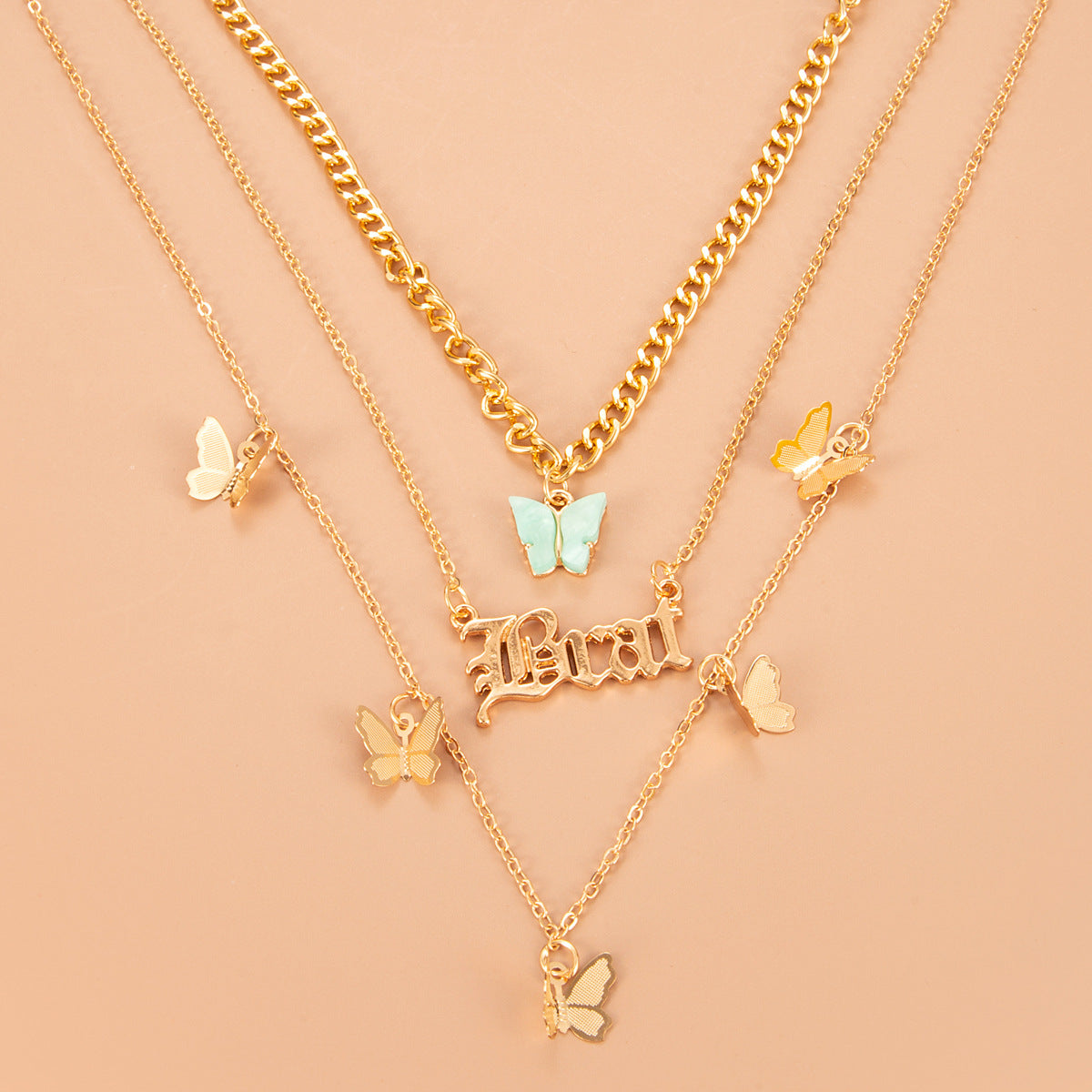 Bohemian Multi-layer Butterfly Pendant Necklace with Letter Charms