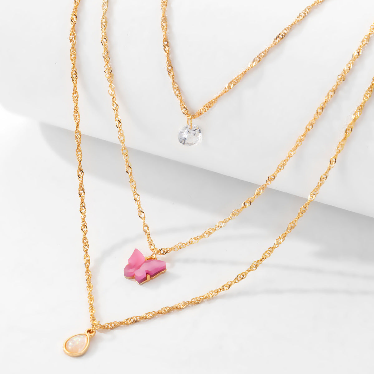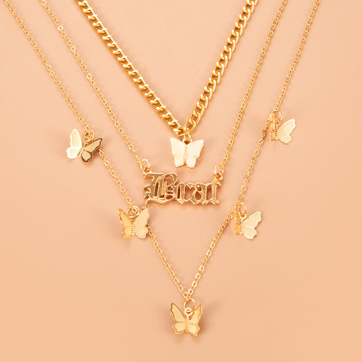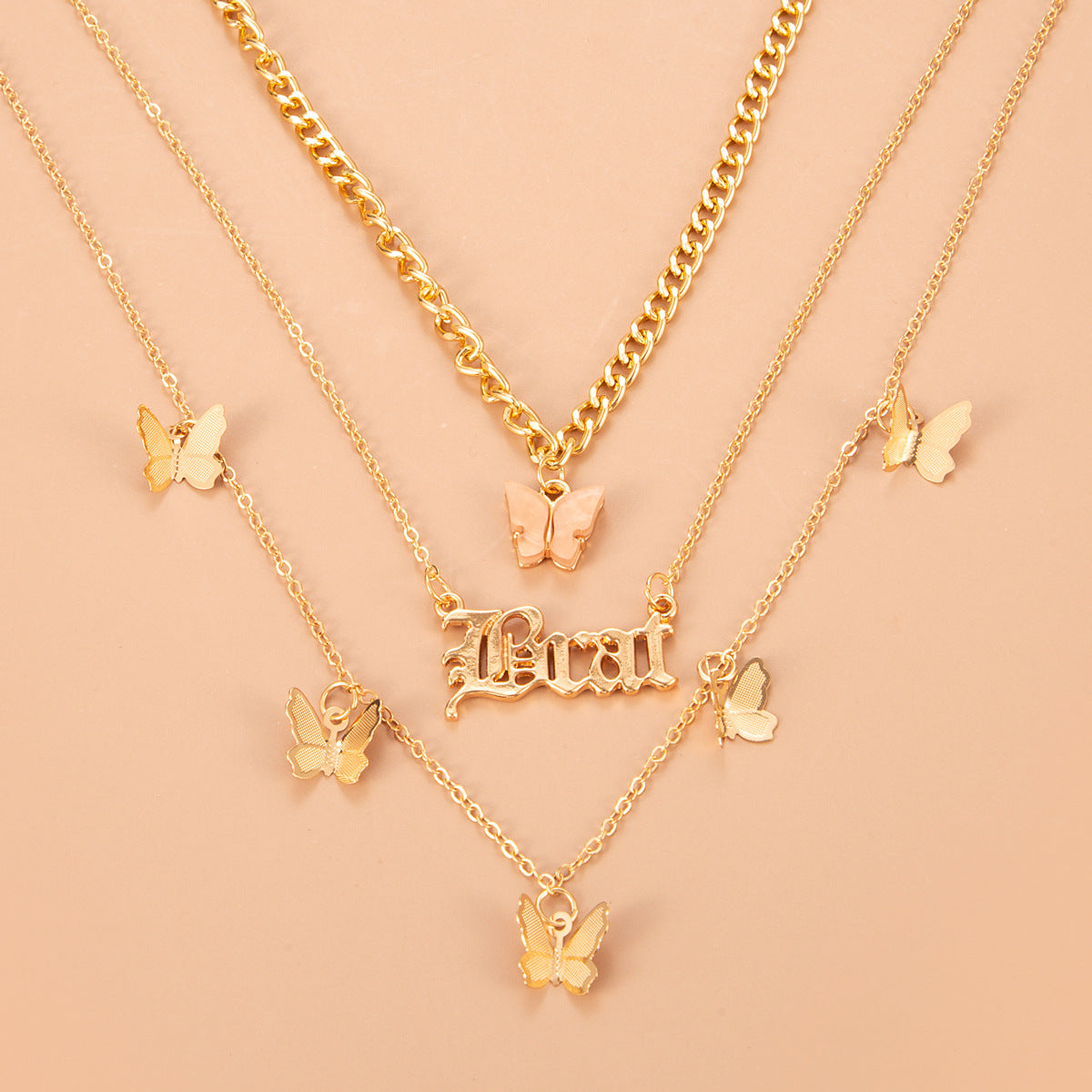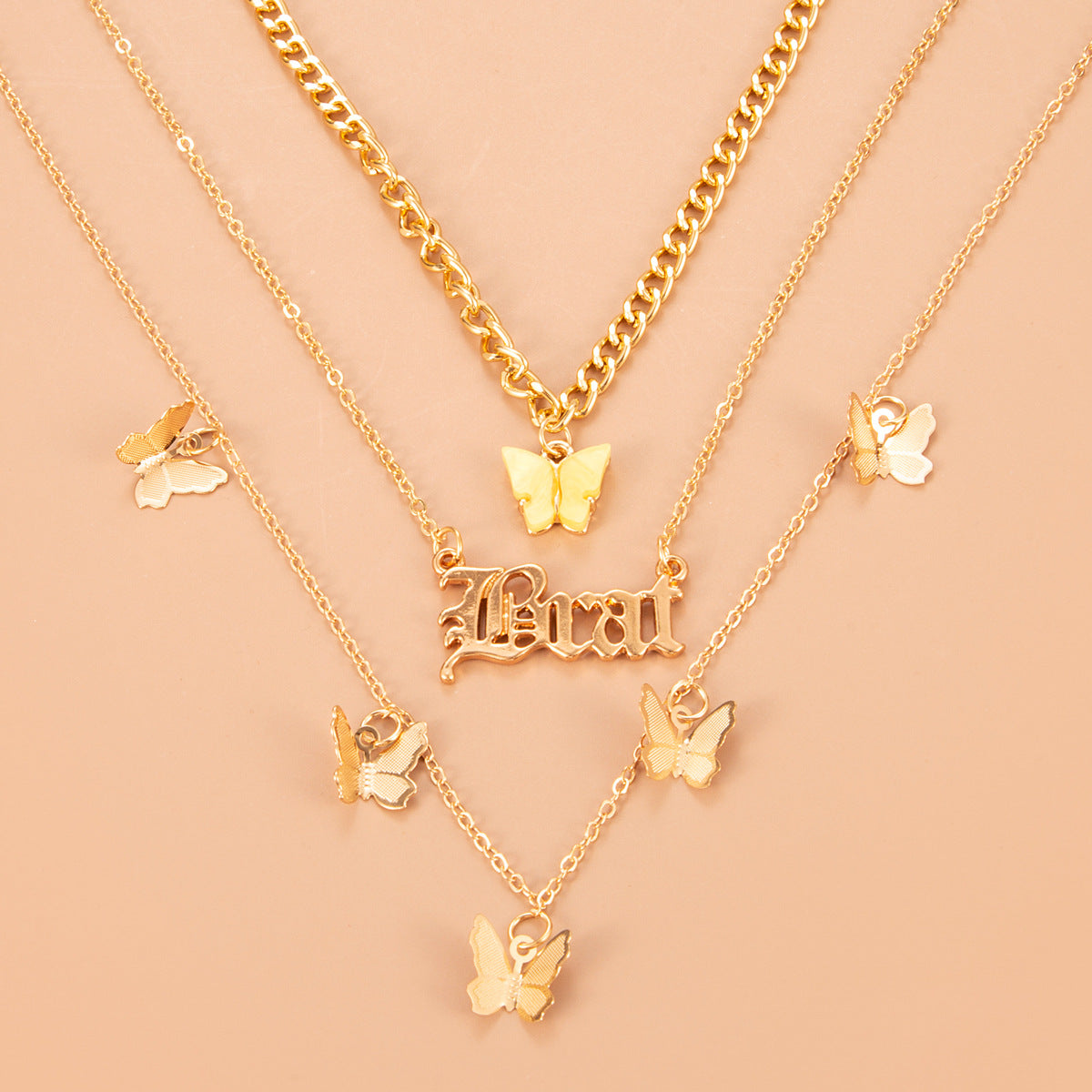 Bohemian Multi-layer Butterfly Pendant Necklace with Letter Charms