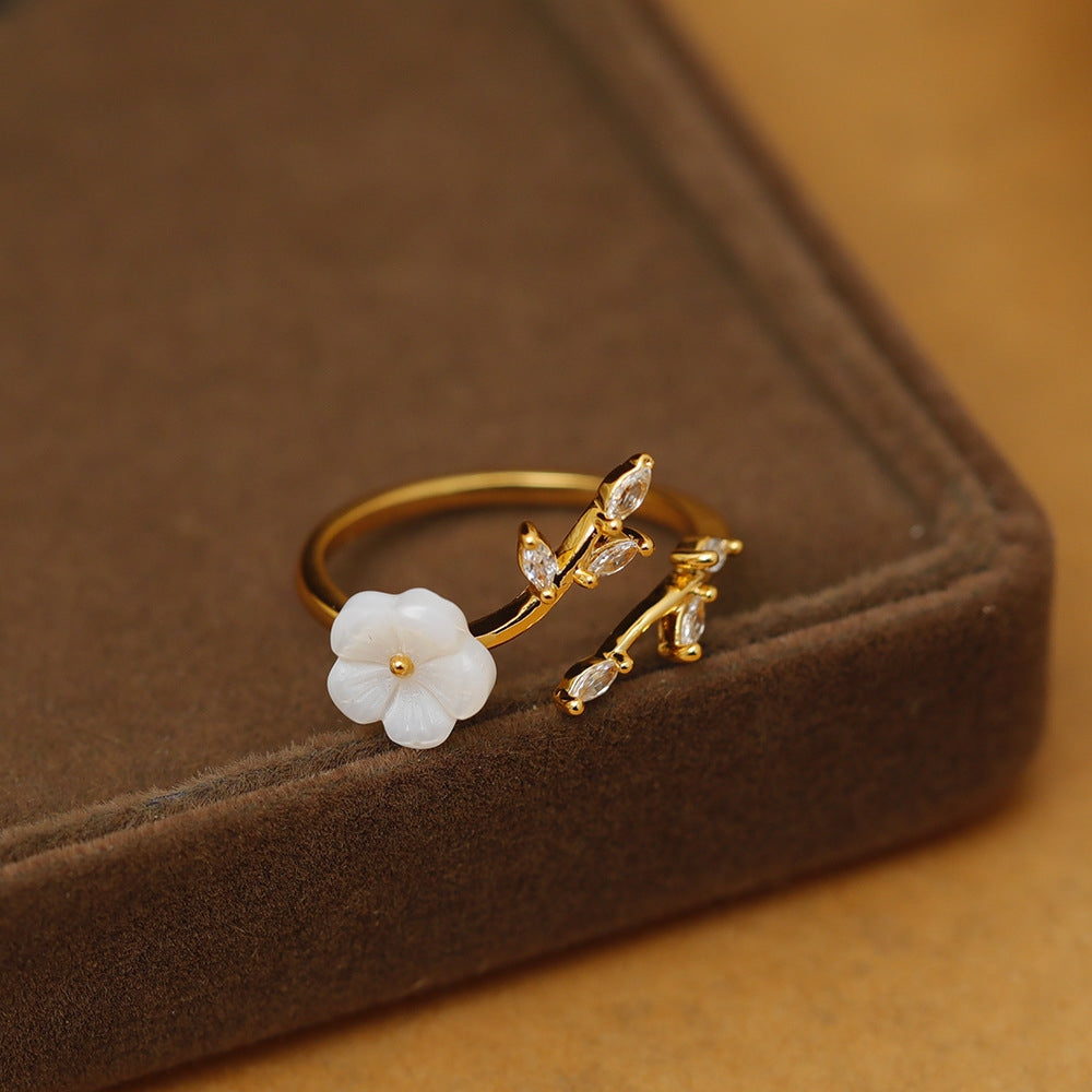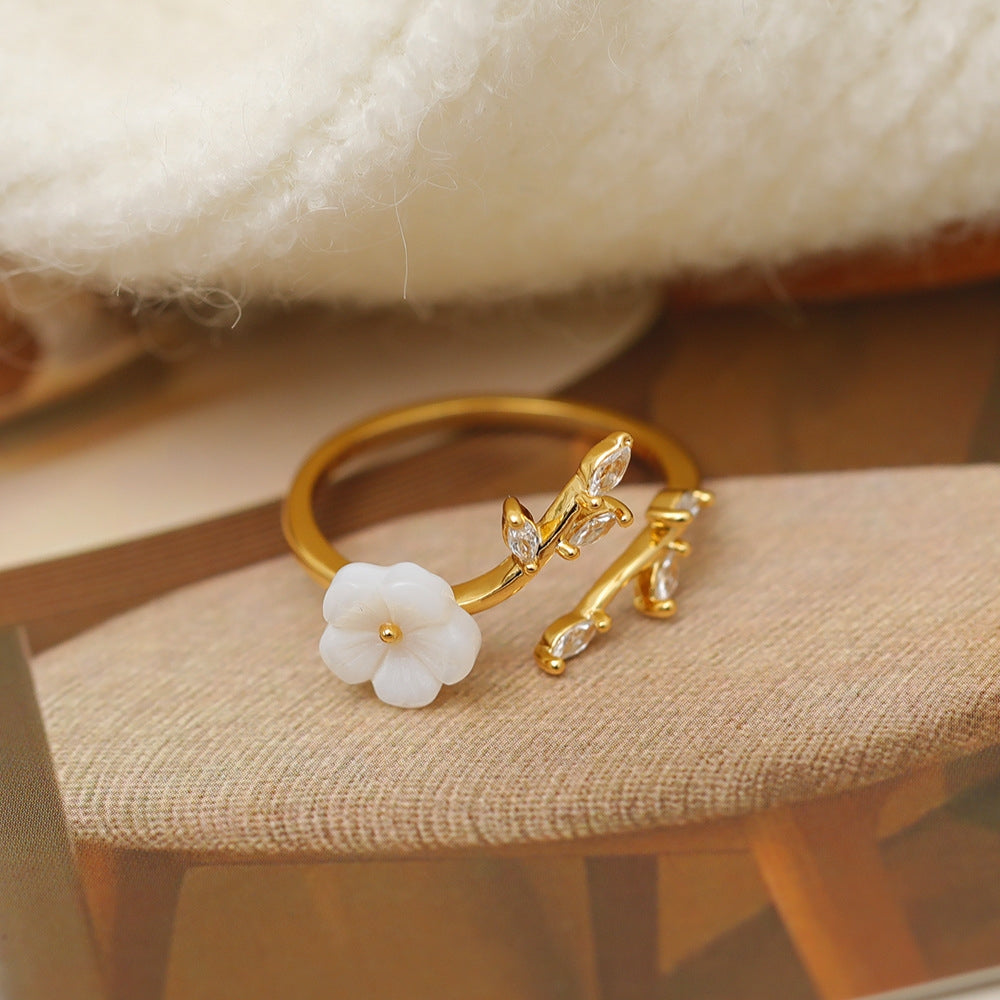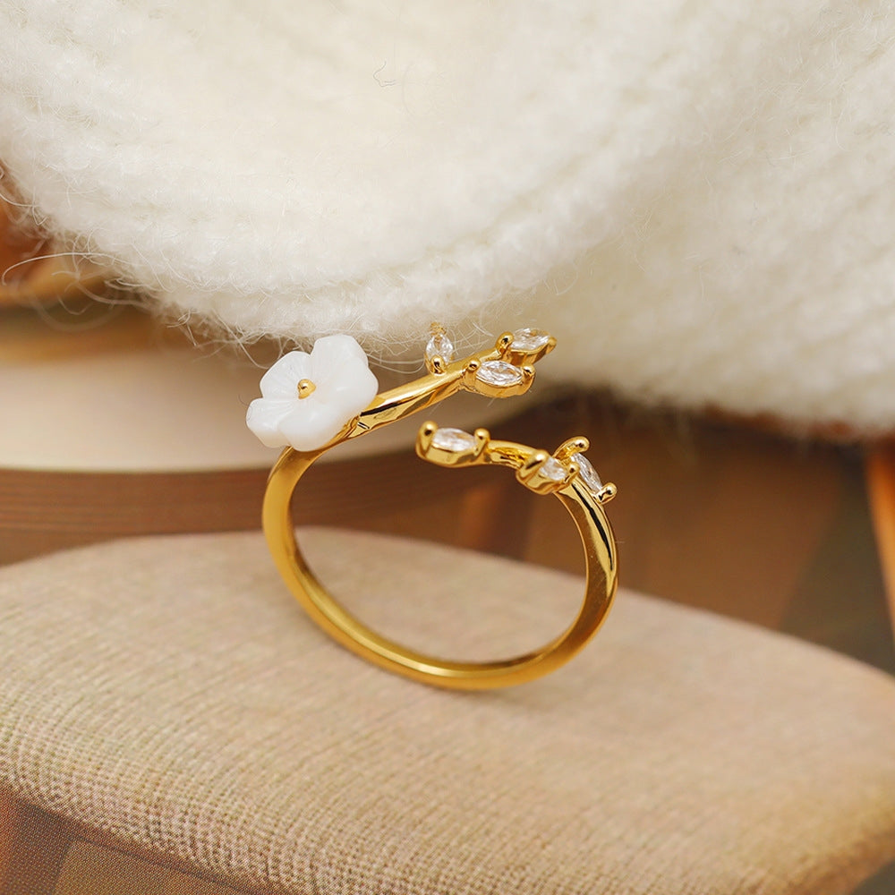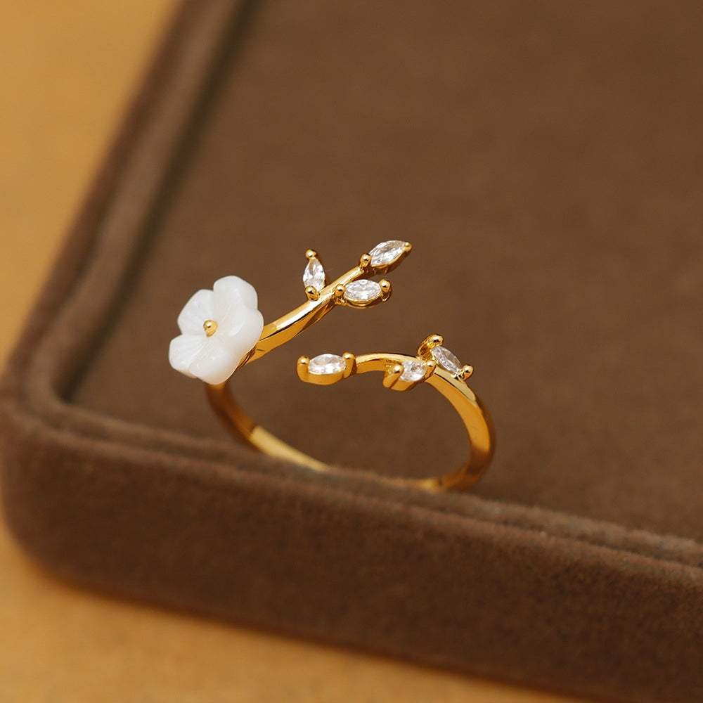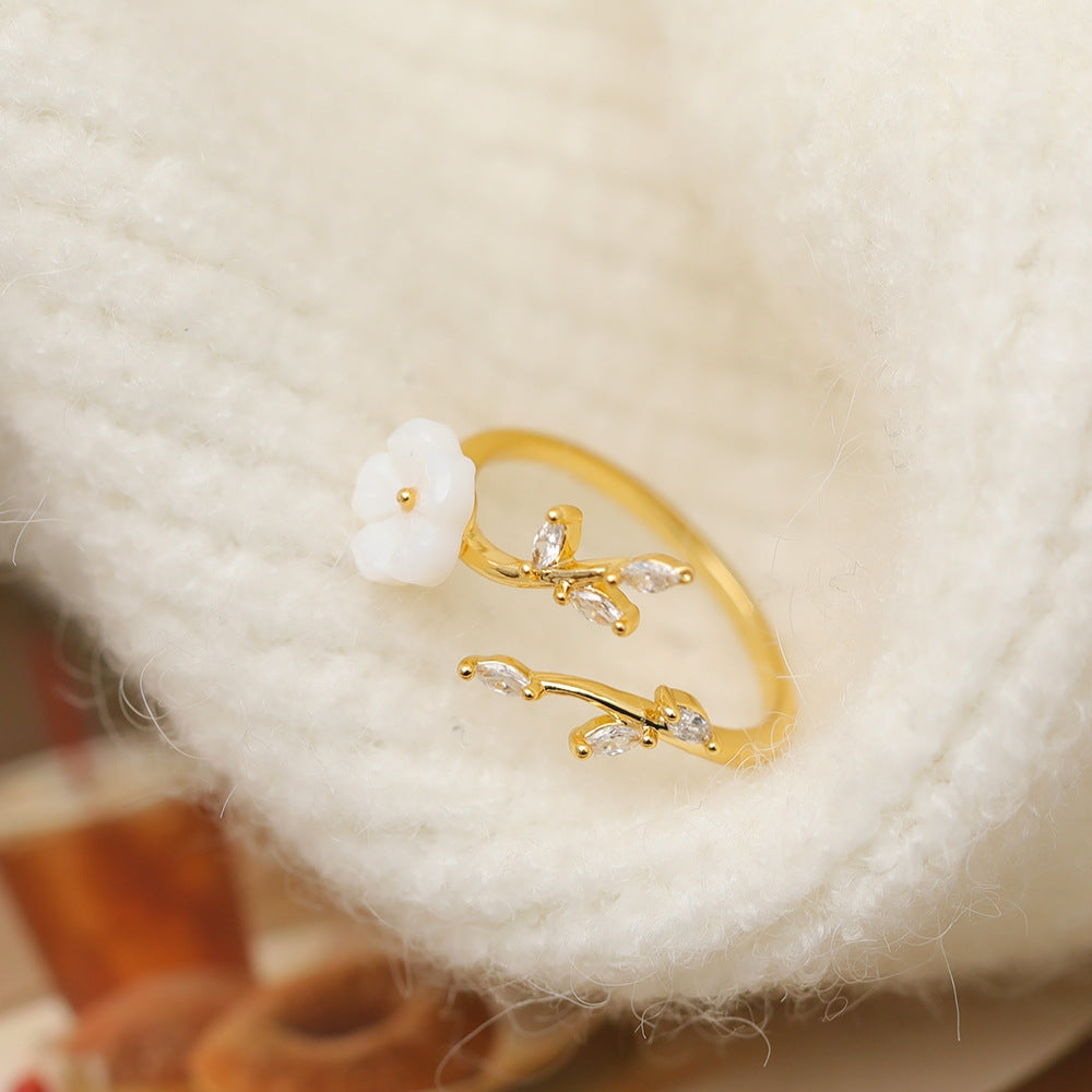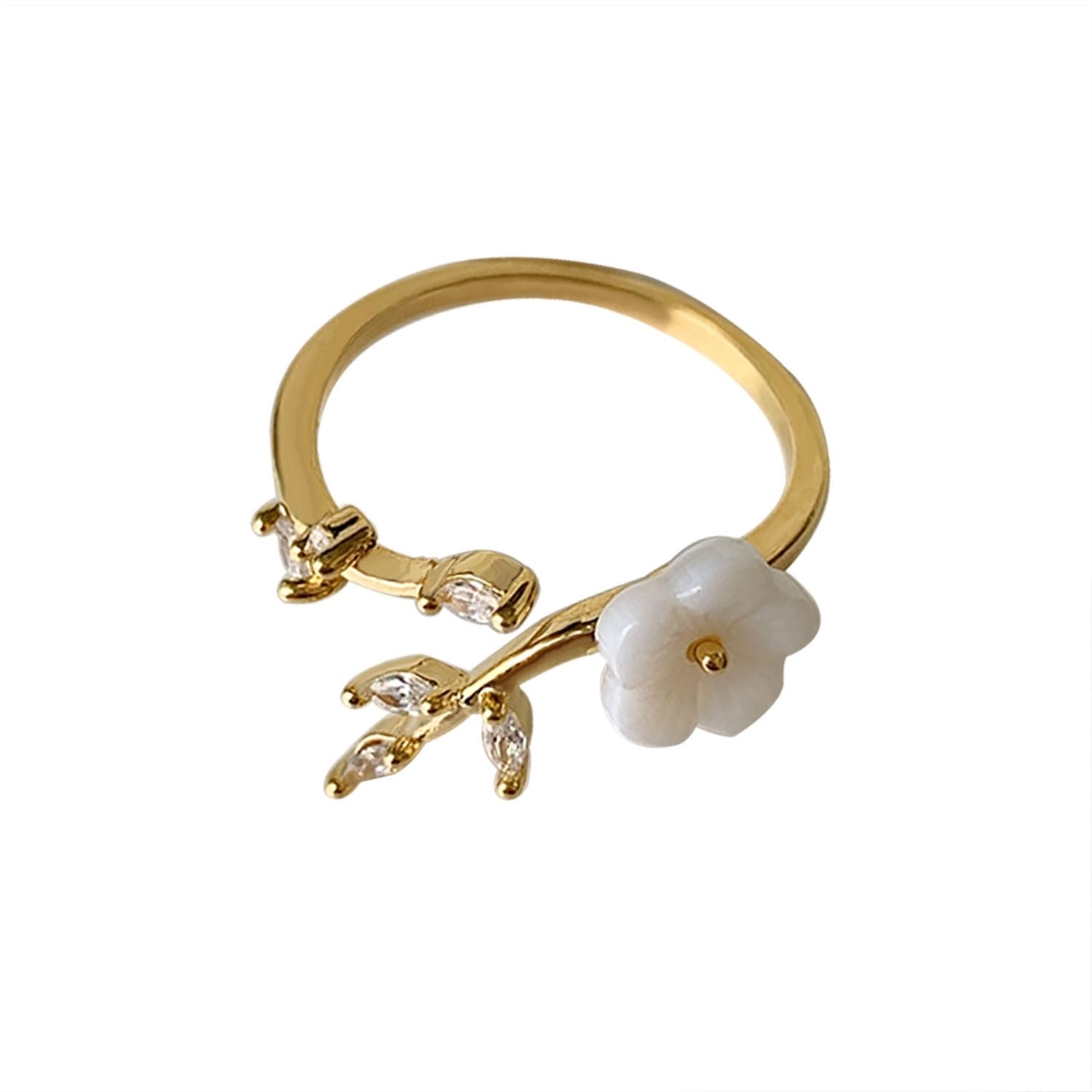 Adjustable 18K Gold Plated Zircon Flower Ring for Women