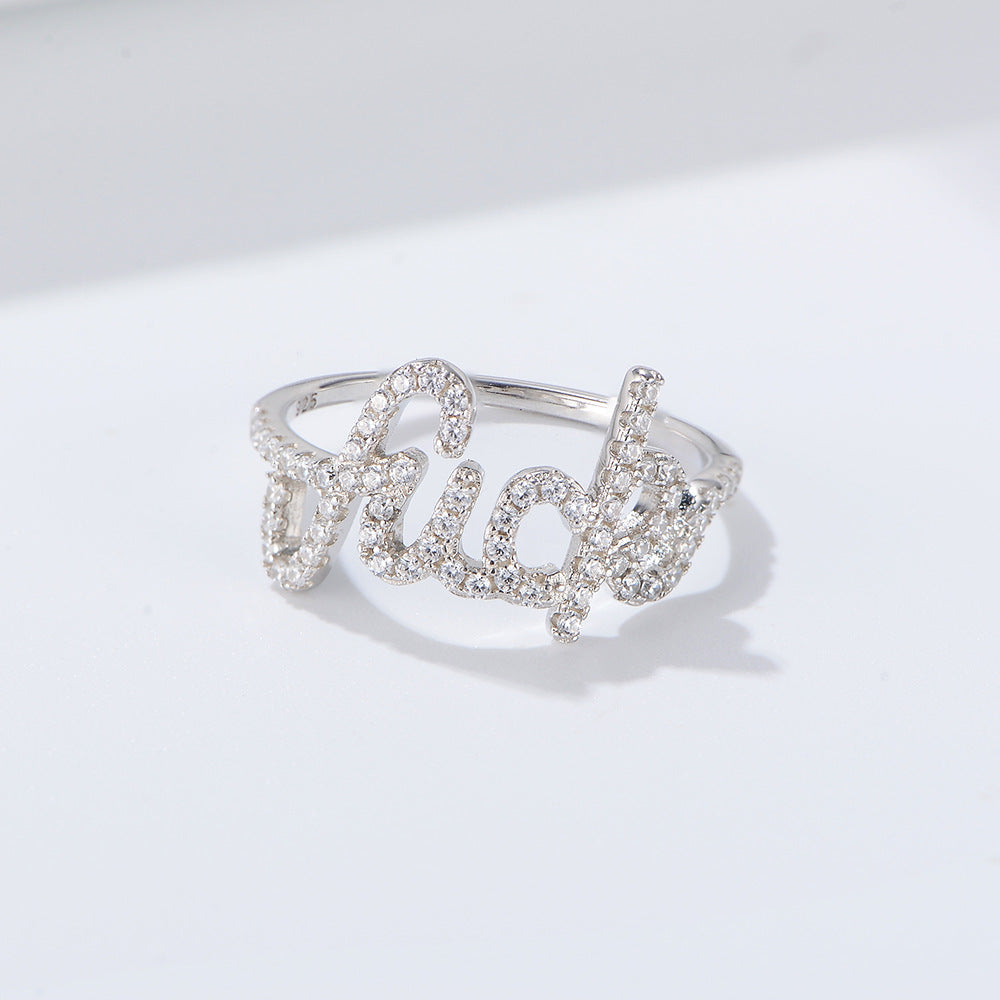Elegant Sterling Silver Zircon Letter Ring for Women