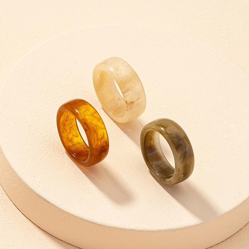 Wholesale Fashion Resin Ring Set - 3 Piece Wide Band Summer Jewelry Collection