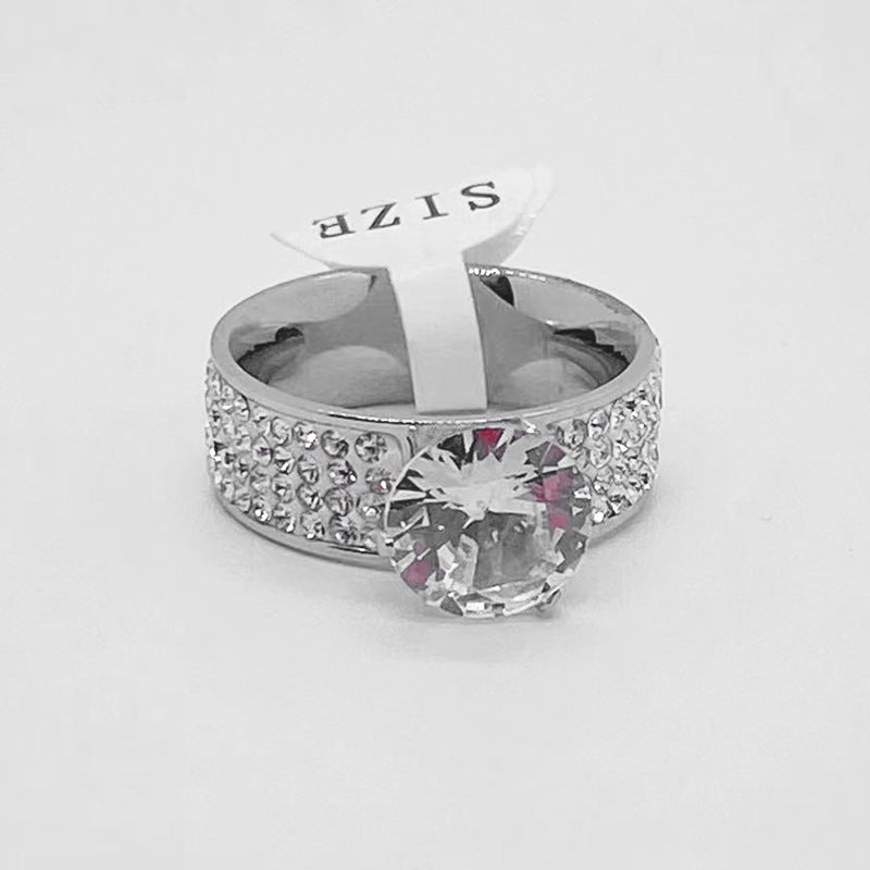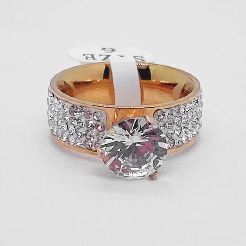 Glamorous Rhinestone Titanium Steel Couple Rings in Rose Gold