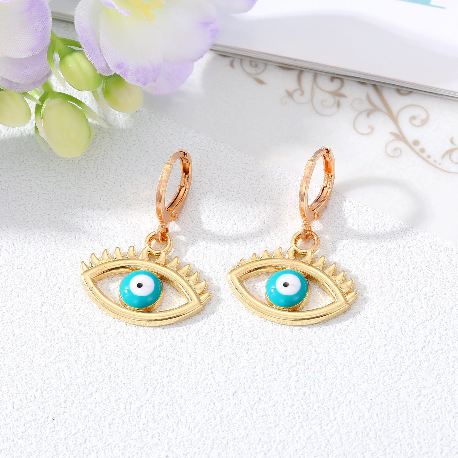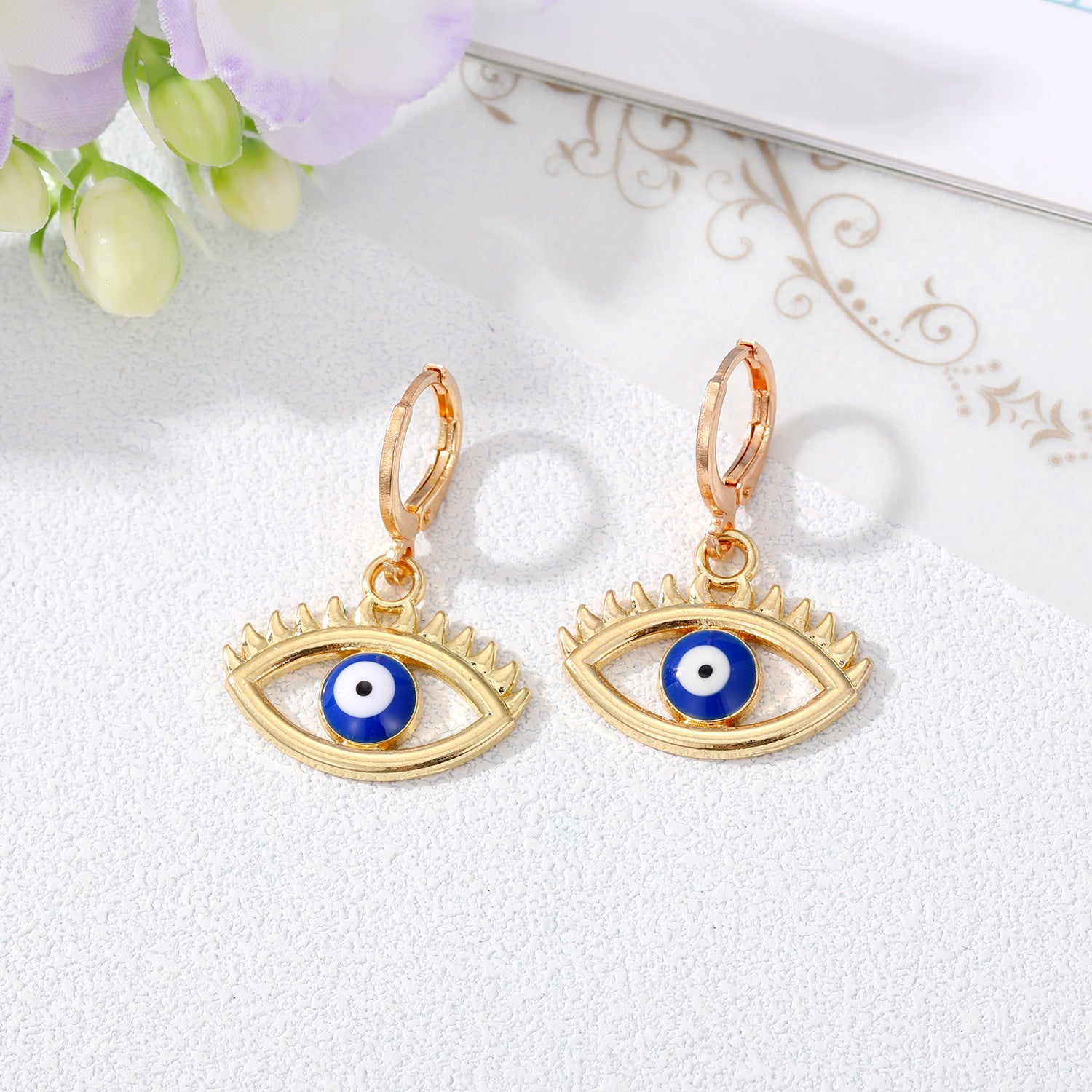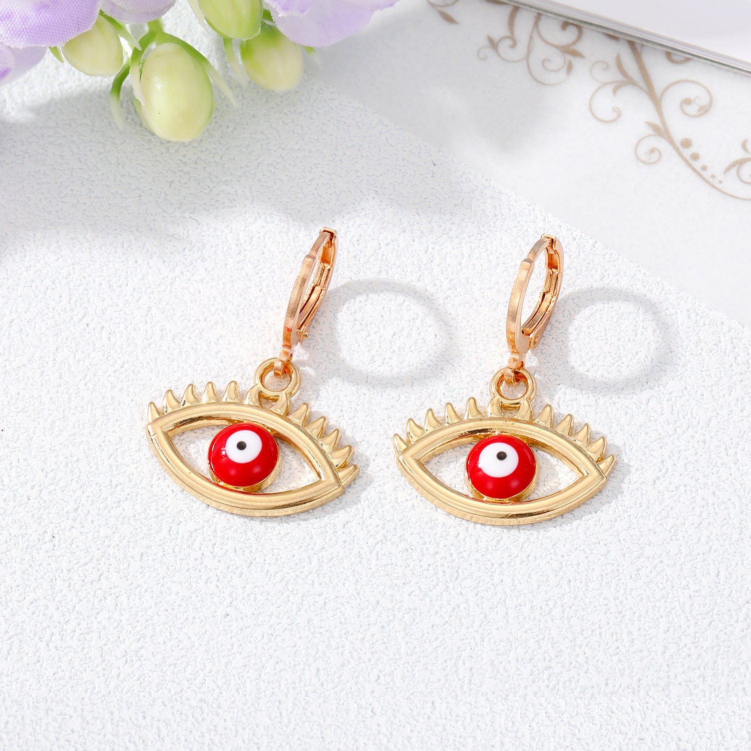 Retro Devil's Eye Alloy Drop Earrings with Hollow Eyelash Design