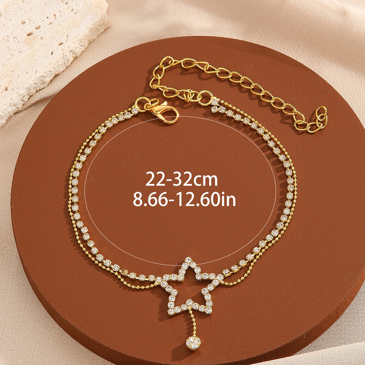 Classic Pentagram Stainless Steel Rhinestone Double Layer Anklet for Women