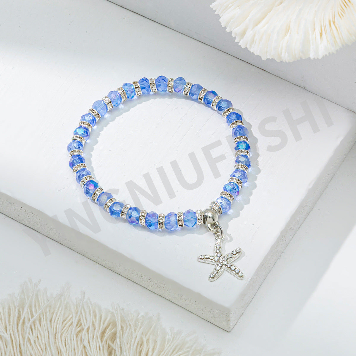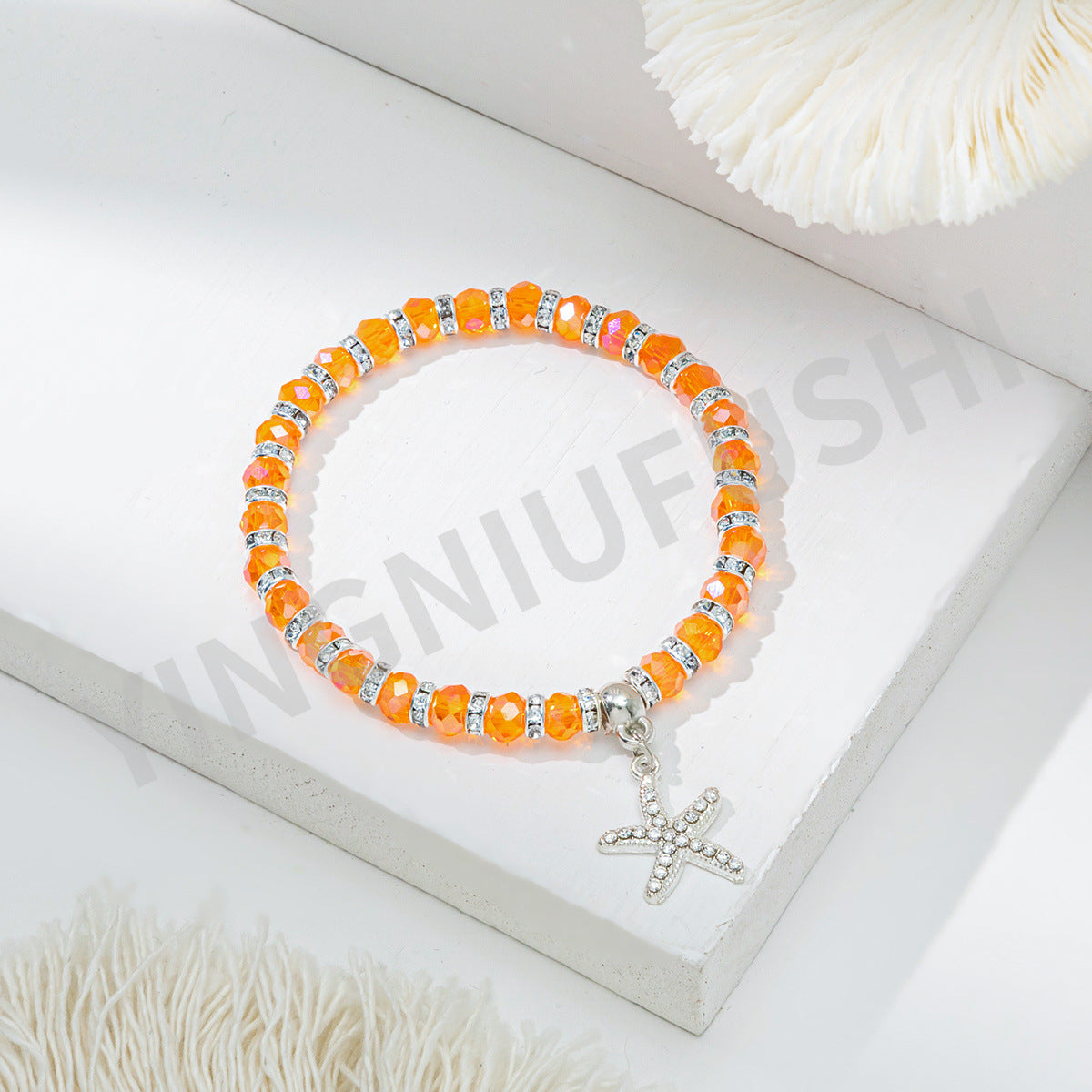 Starfish Crystal Beaded Bracelet - Colorful Handmade Elastic Jewelry