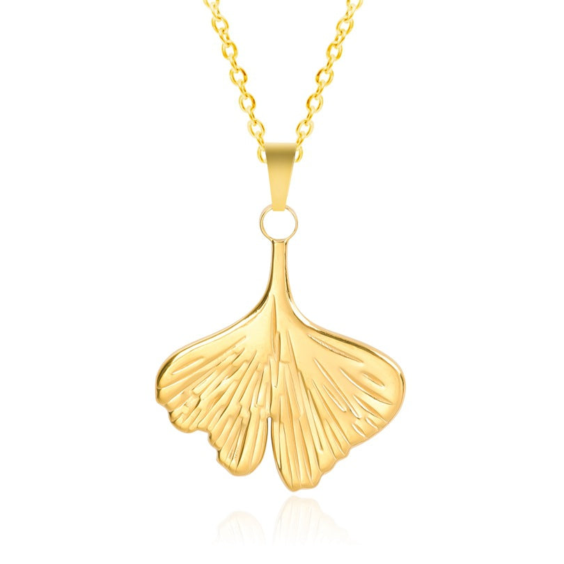 Ginkgo Leaf 18K Gold Plated Stainless Steel Pendant Necklace