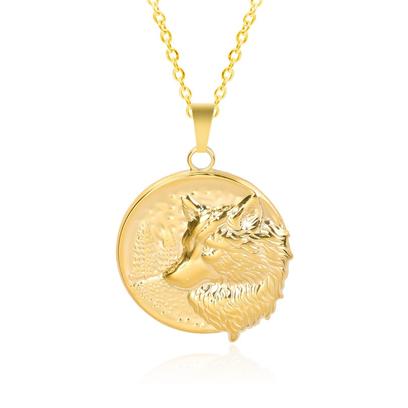 18K Gold Plated Stainless Steel Wolf Pendant Necklace