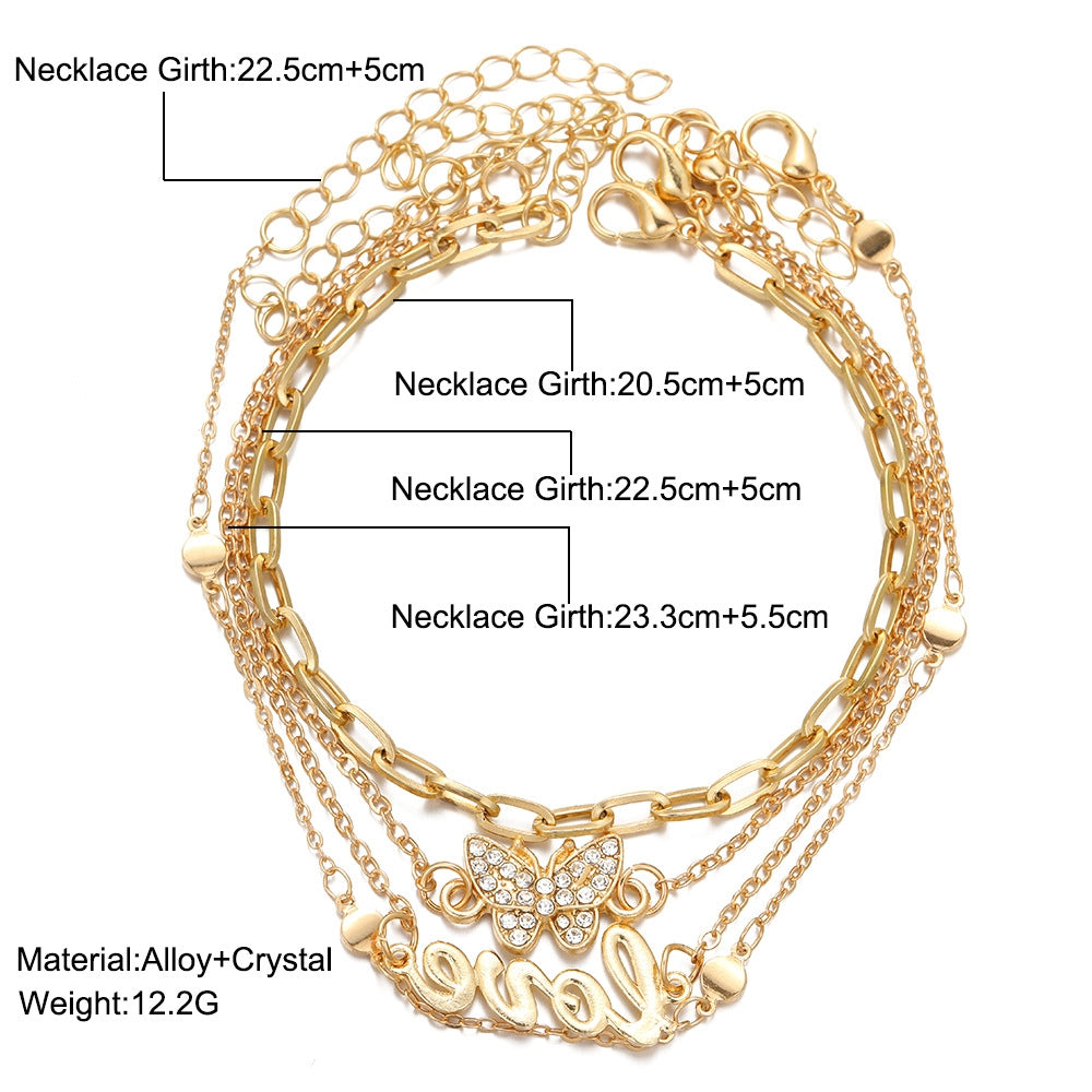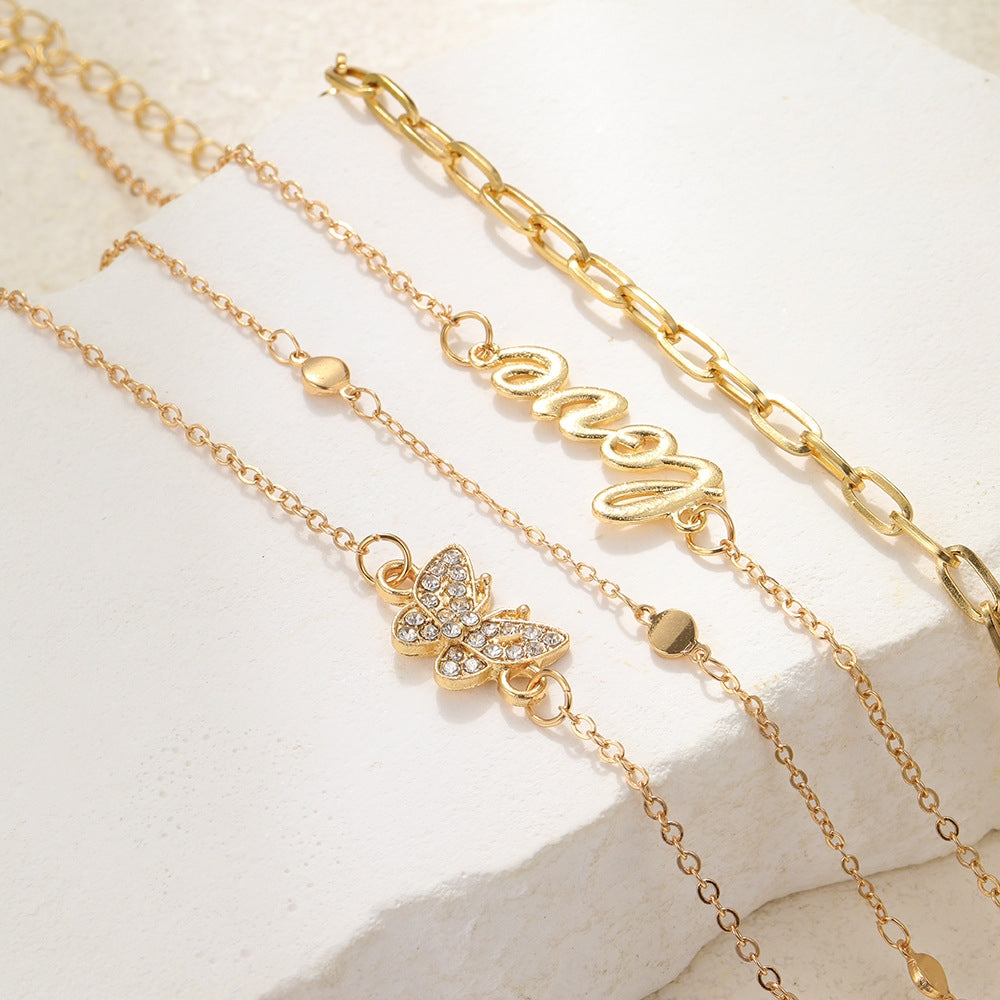 Butterfly Letter Rhinestone Anklet and Love Charm Bracelet Set