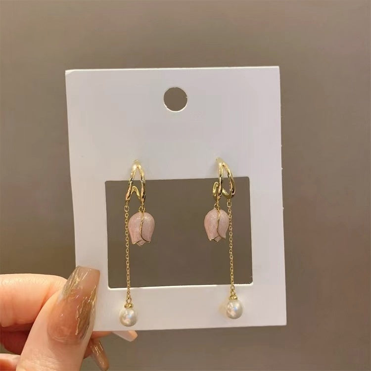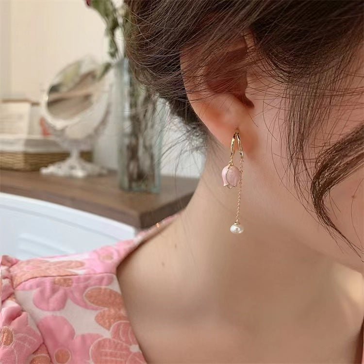 Cute Flower Tassel Drop Earrings with Tulip Pearl Design