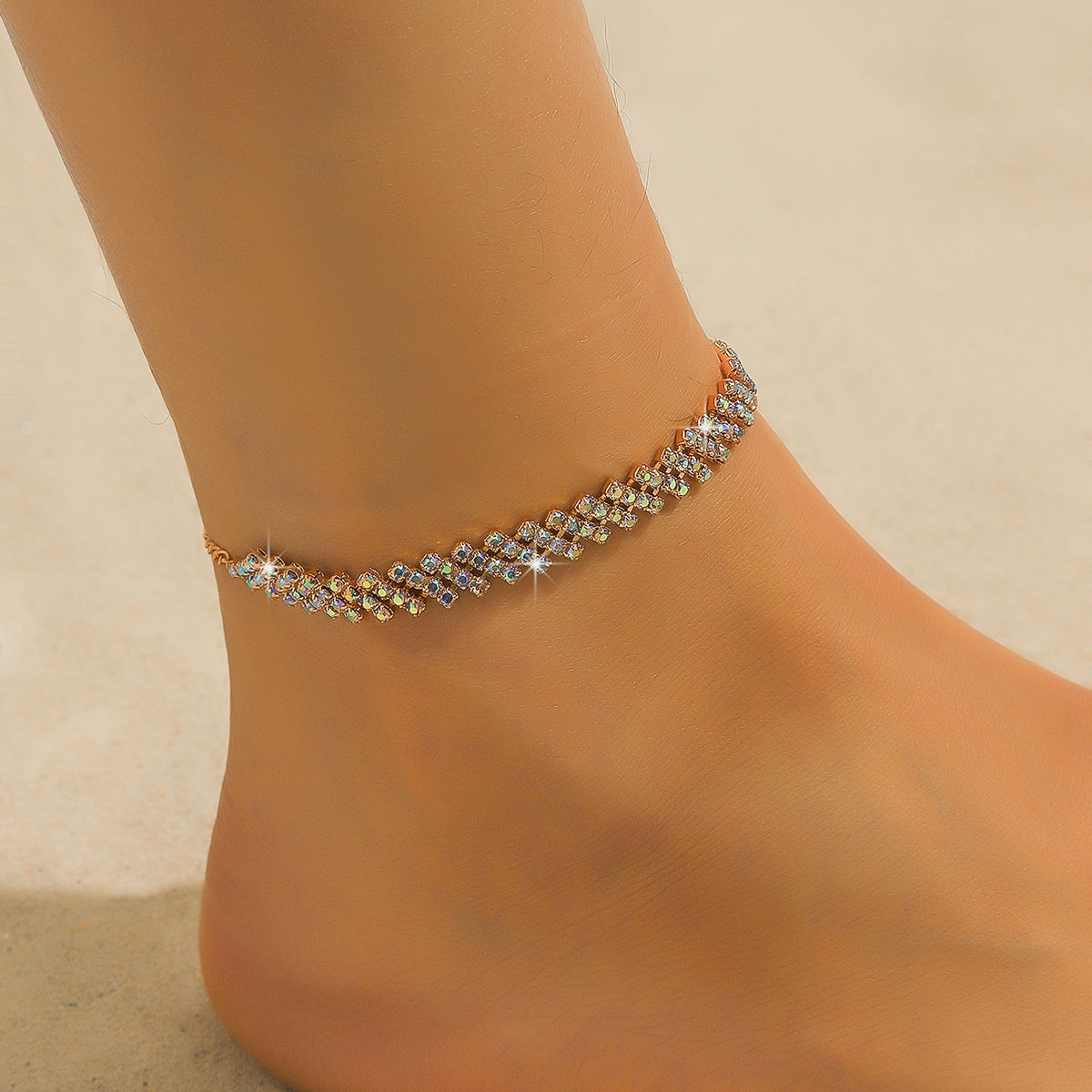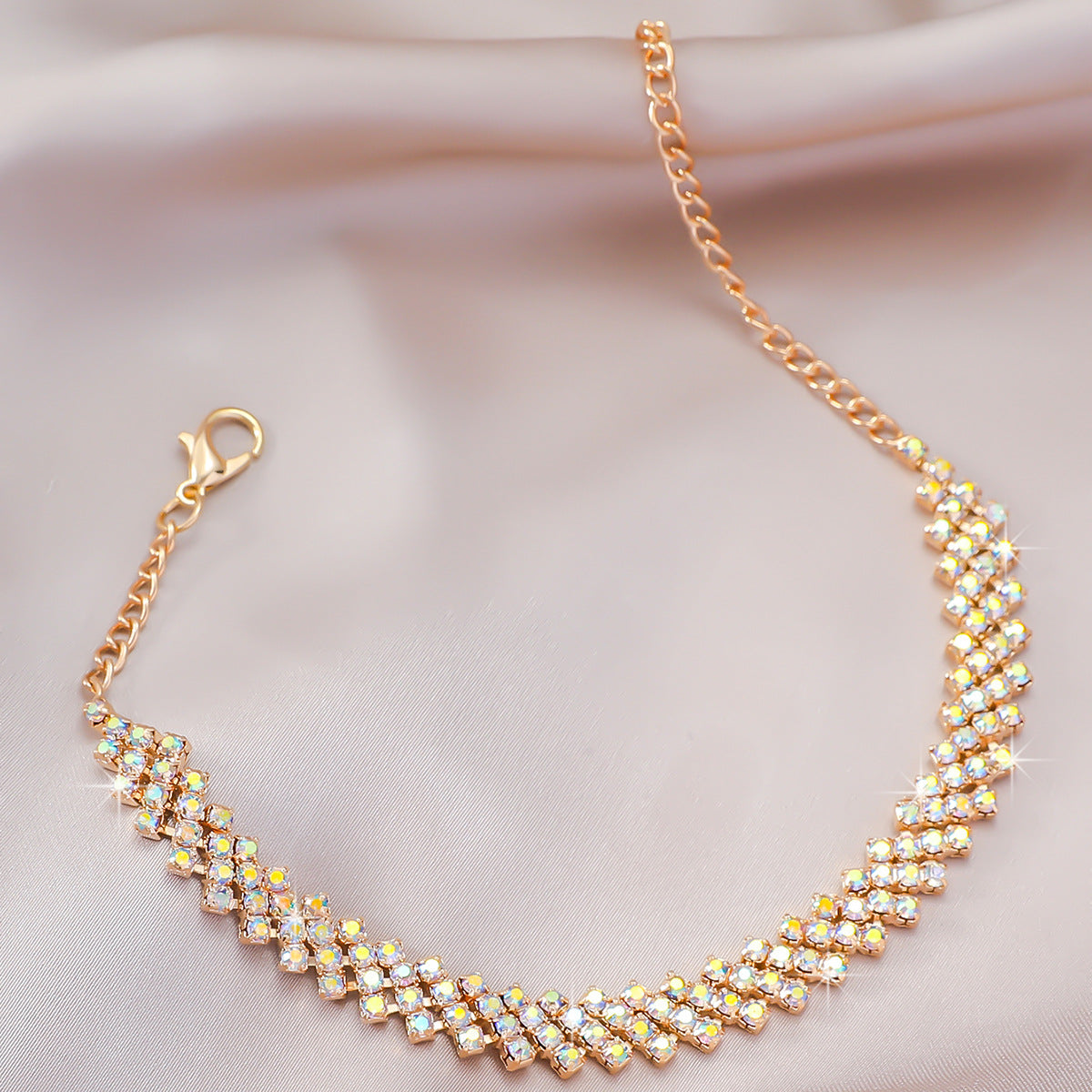 Elegant Geometric Rhinestone Gold Plated Anklet
