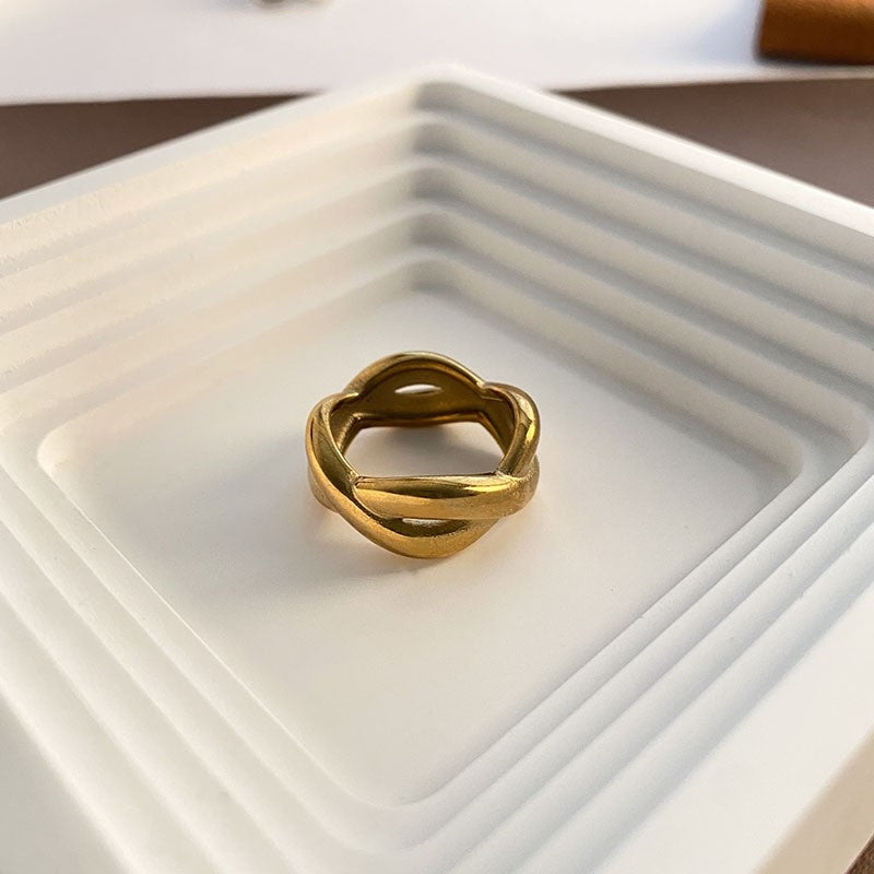 Elegant Minimalist 18K Gold Plated Titanium Steel Ring for Women