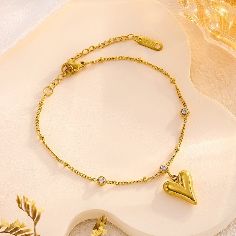 18K Gold Plated Heart Shape Rhinestone Anklet - Fairy Style Stainless Steel Design