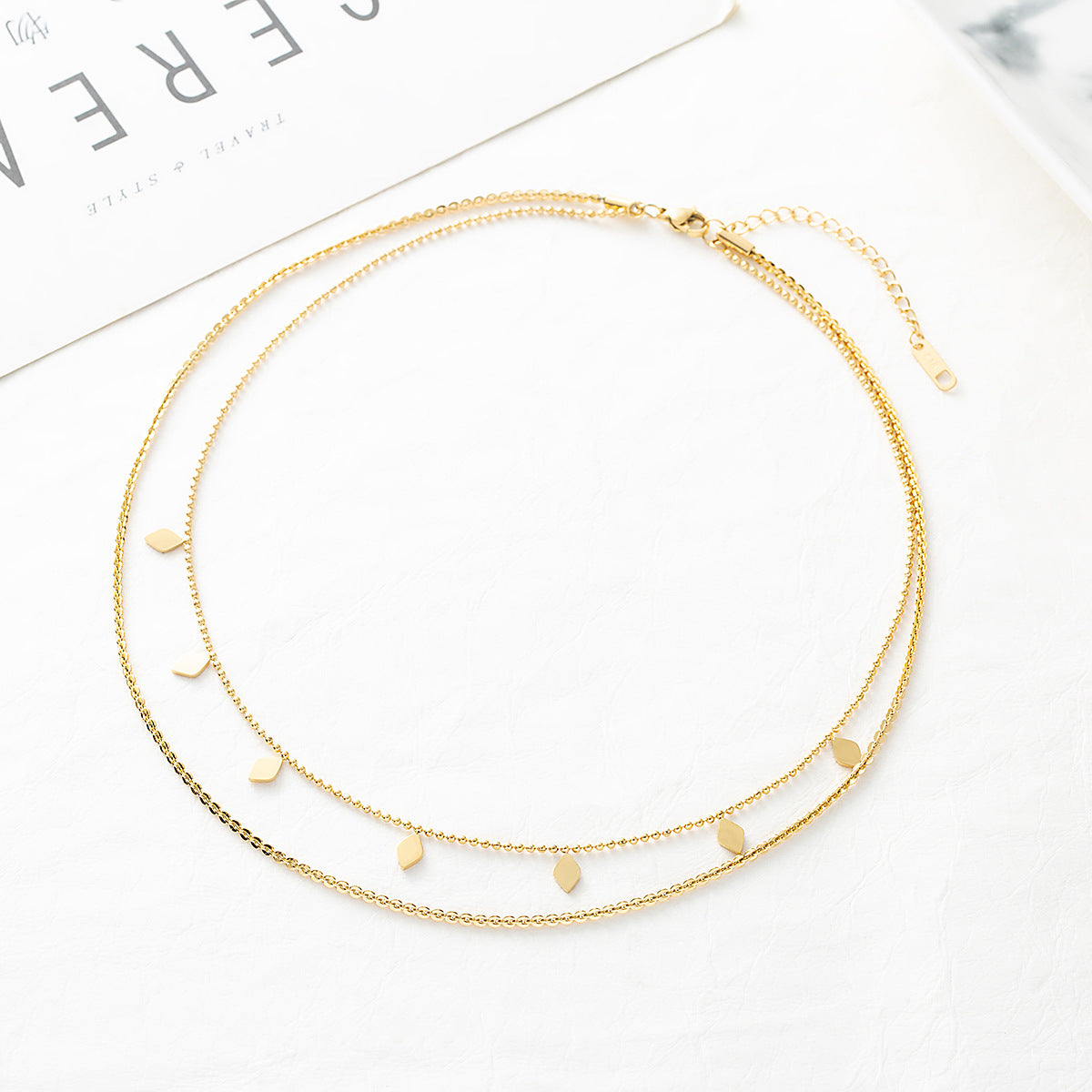 Rhombus Stainless Steel Layered Necklace with 18K Gold Plating