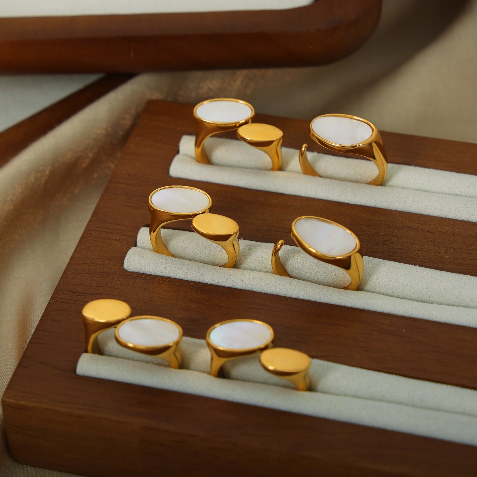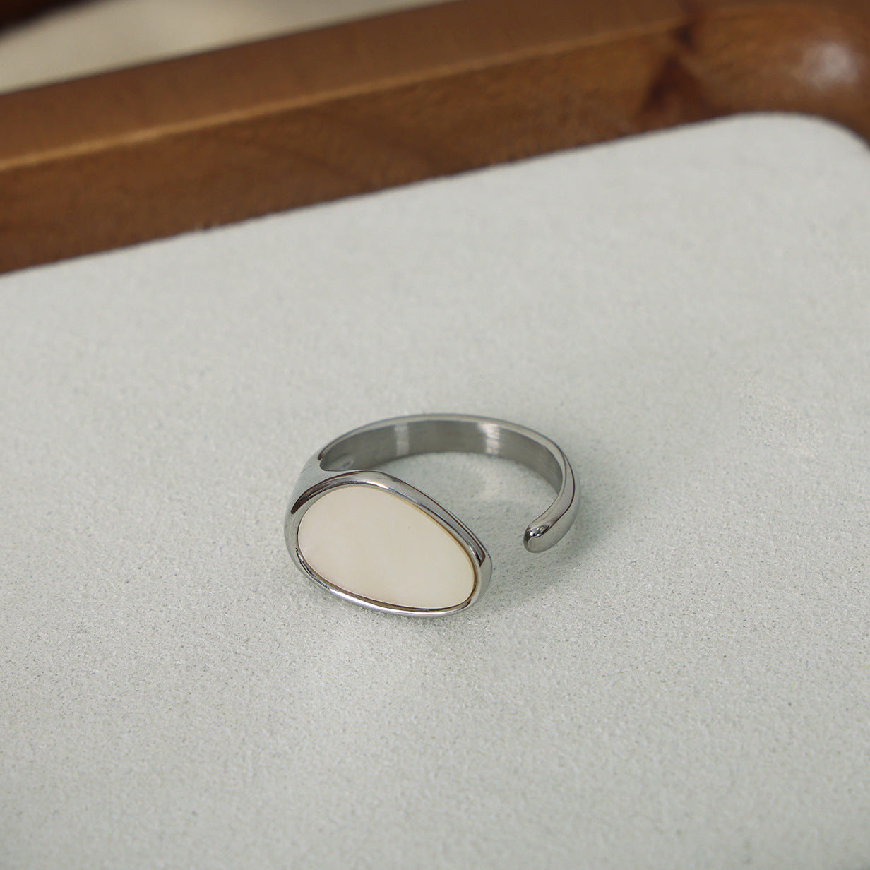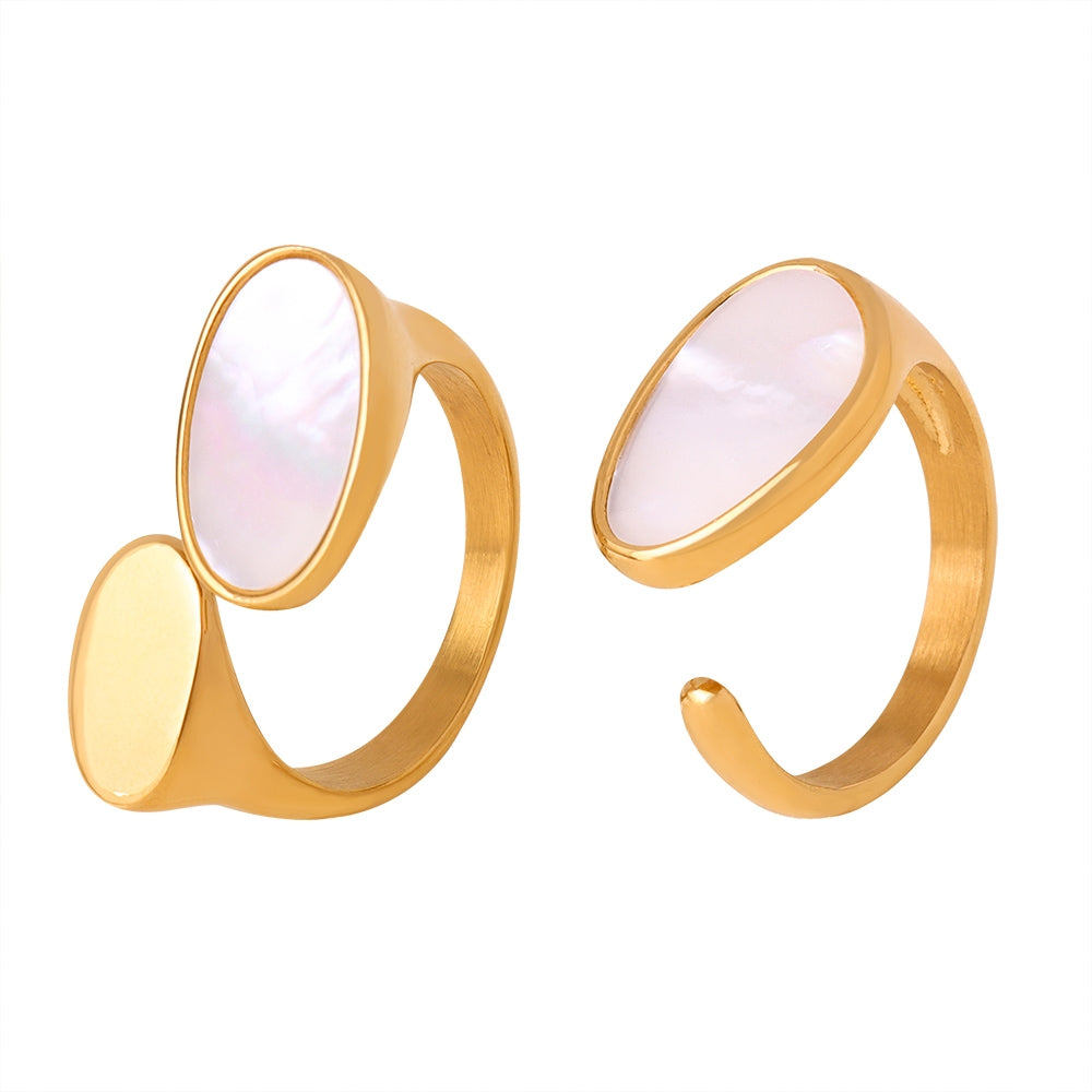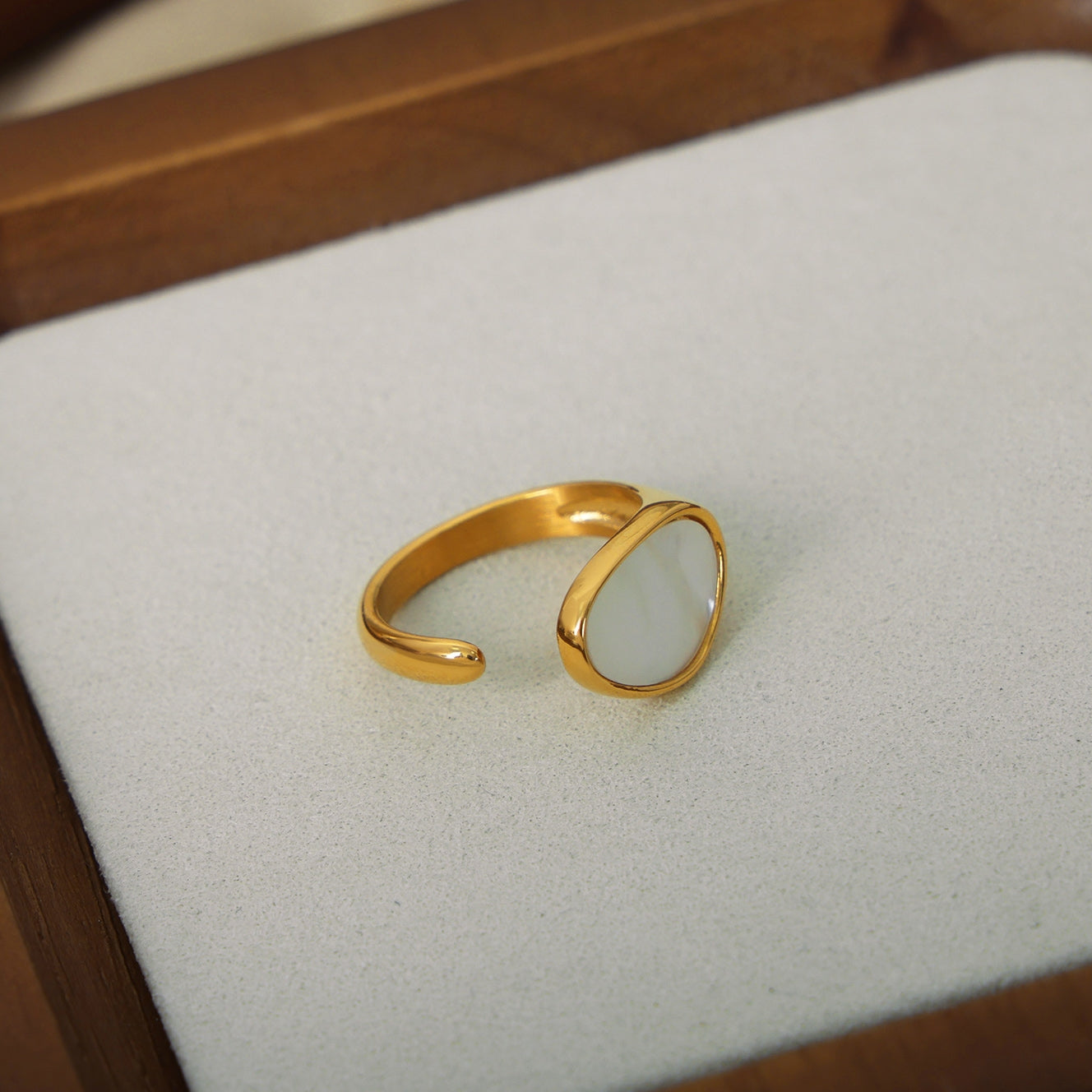 French Style Color Block Titanium Steel 18K Gold Plated Open Ring with White Shell Inlay