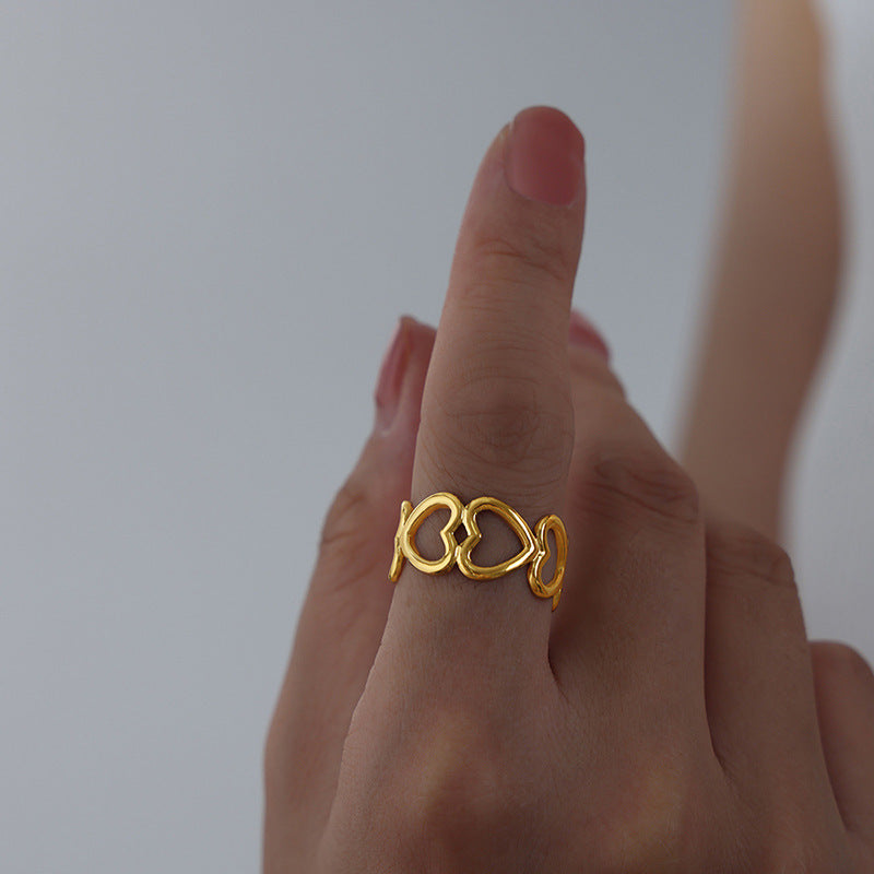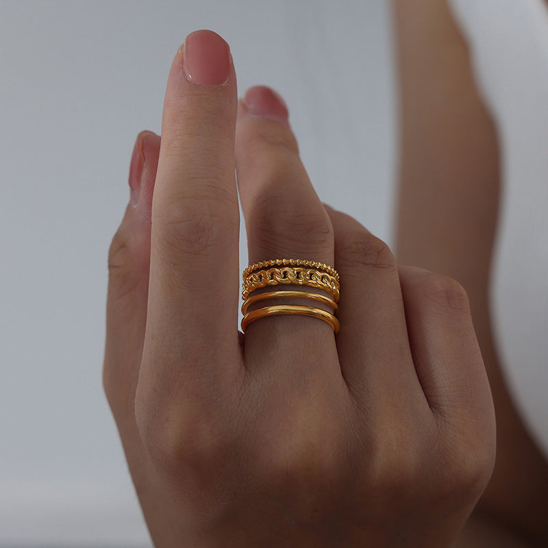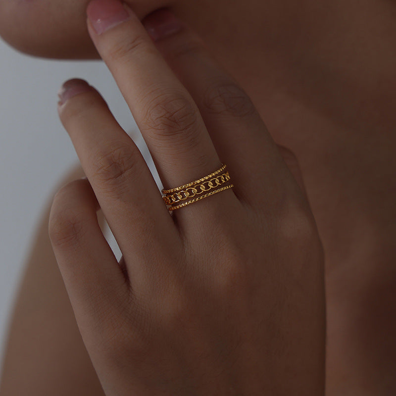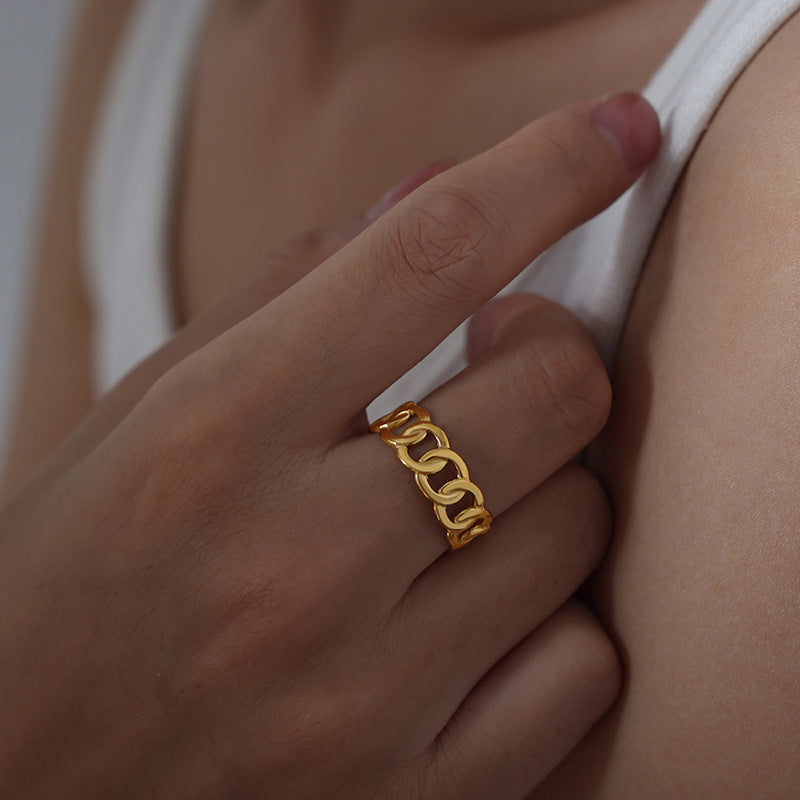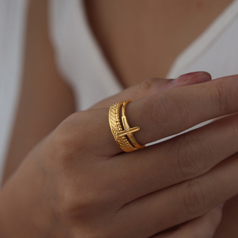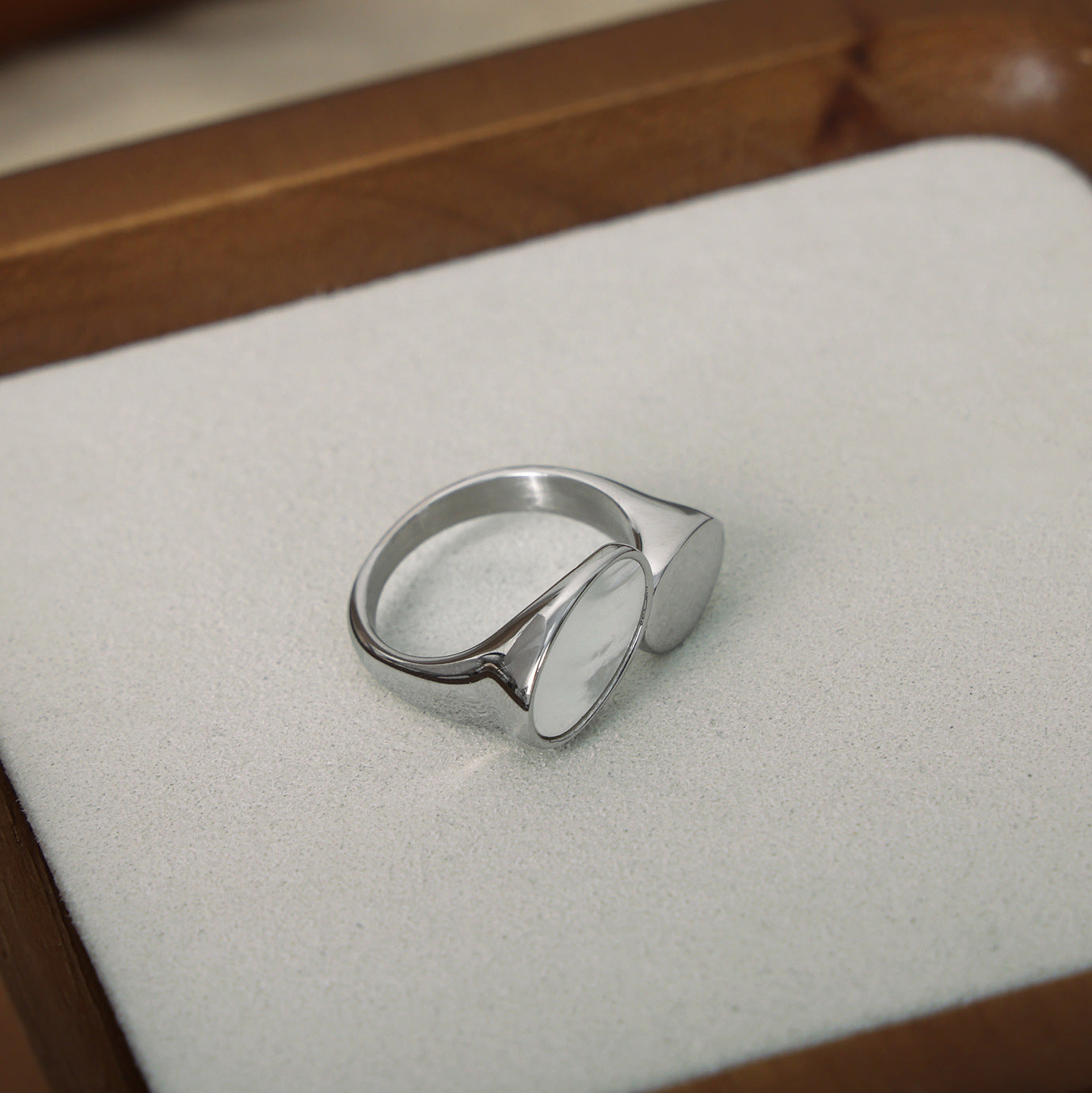 French Style Color Block Titanium Steel 18K Gold Plated Open Ring with White Shell Inlay