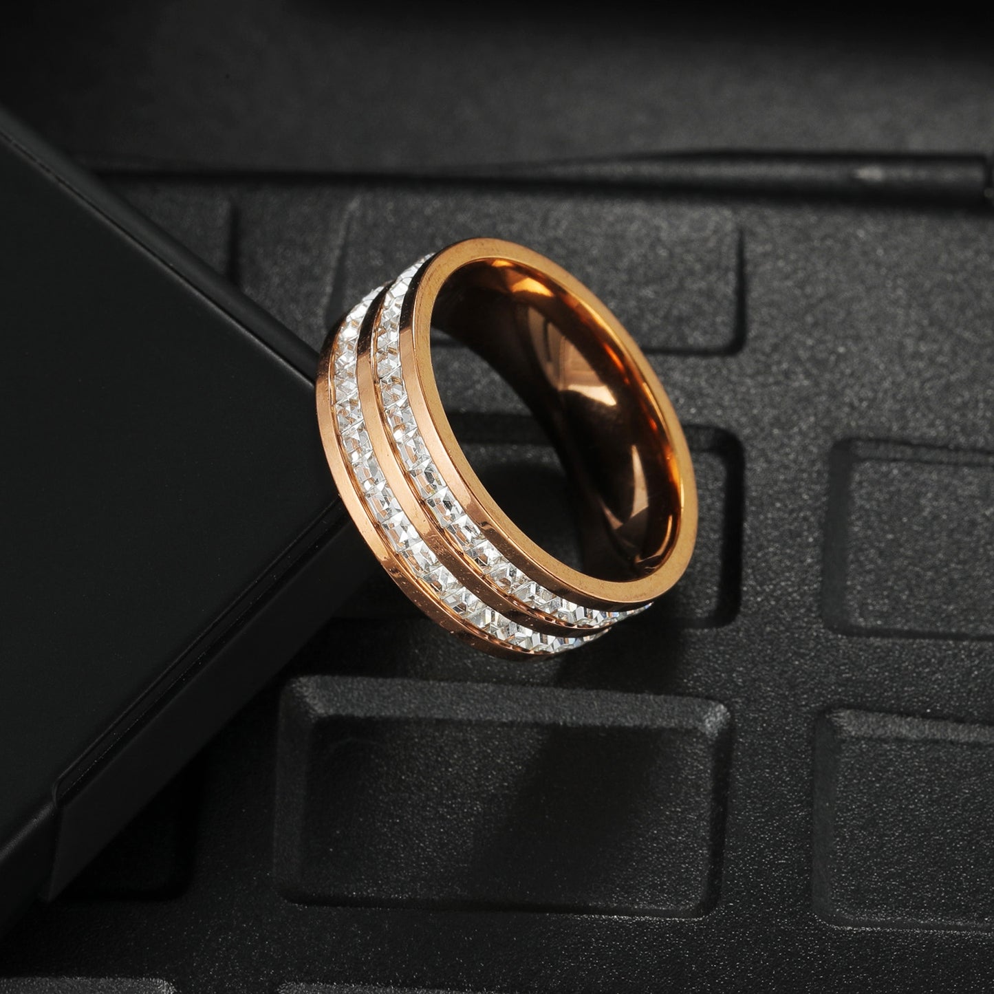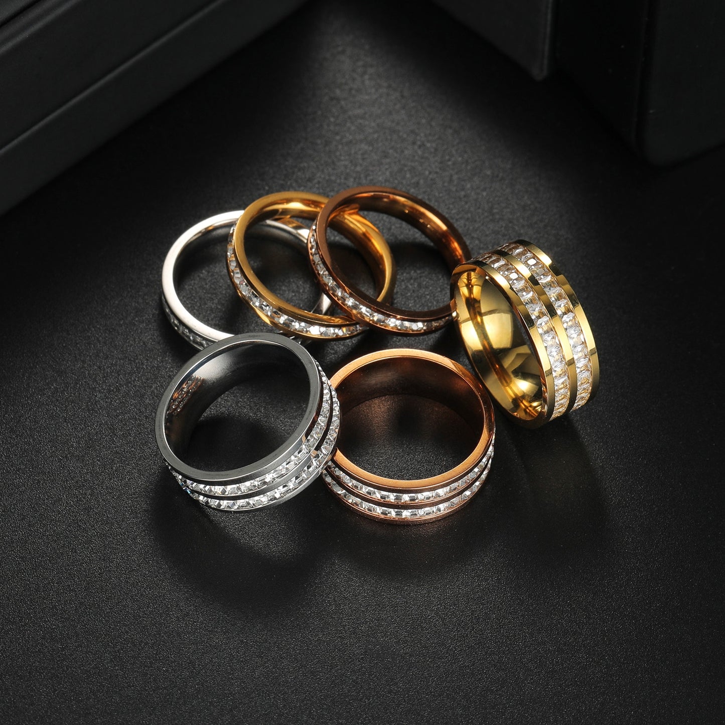 Stainless Steel Rhinestone Rose Gold Plated Square Zircon Couple Rings