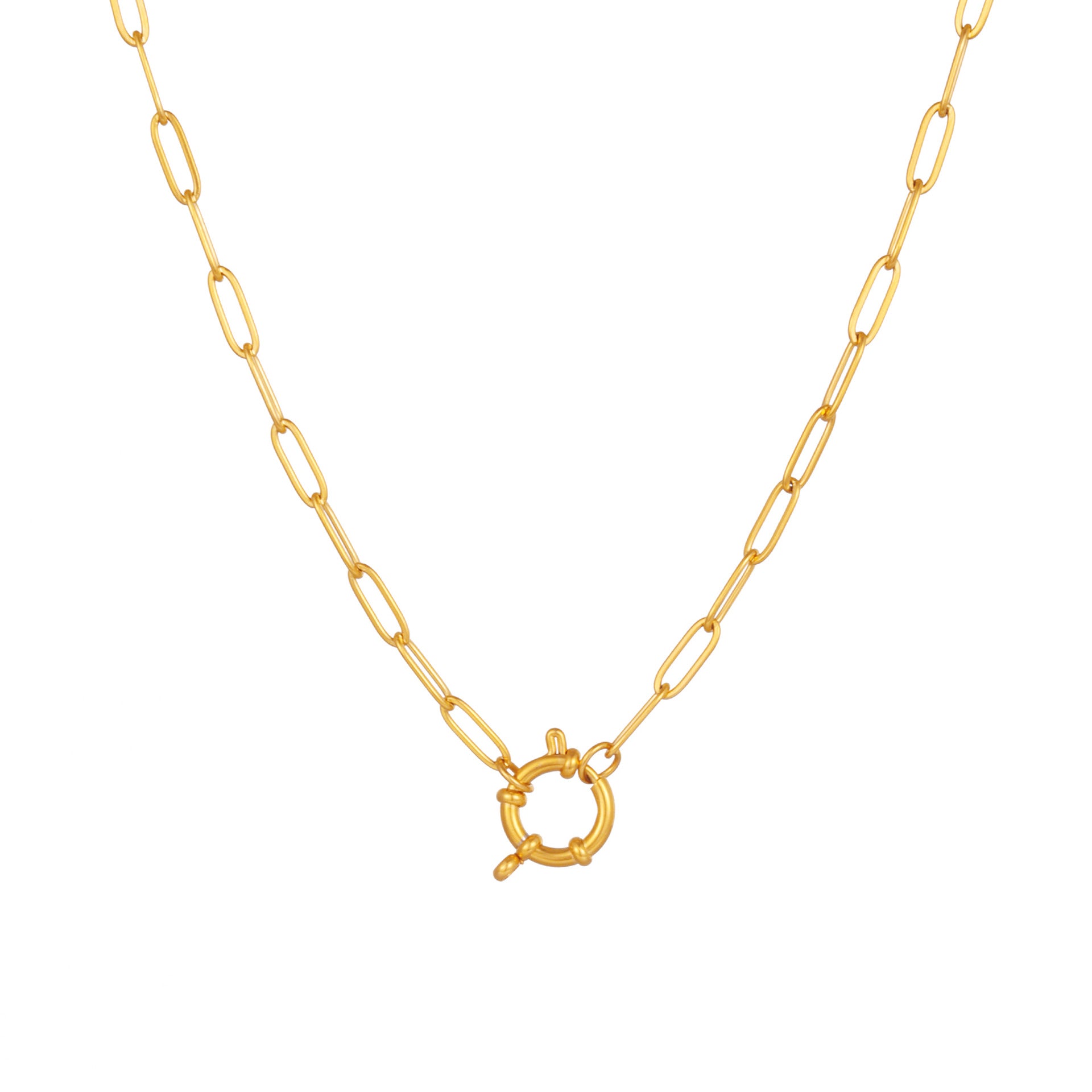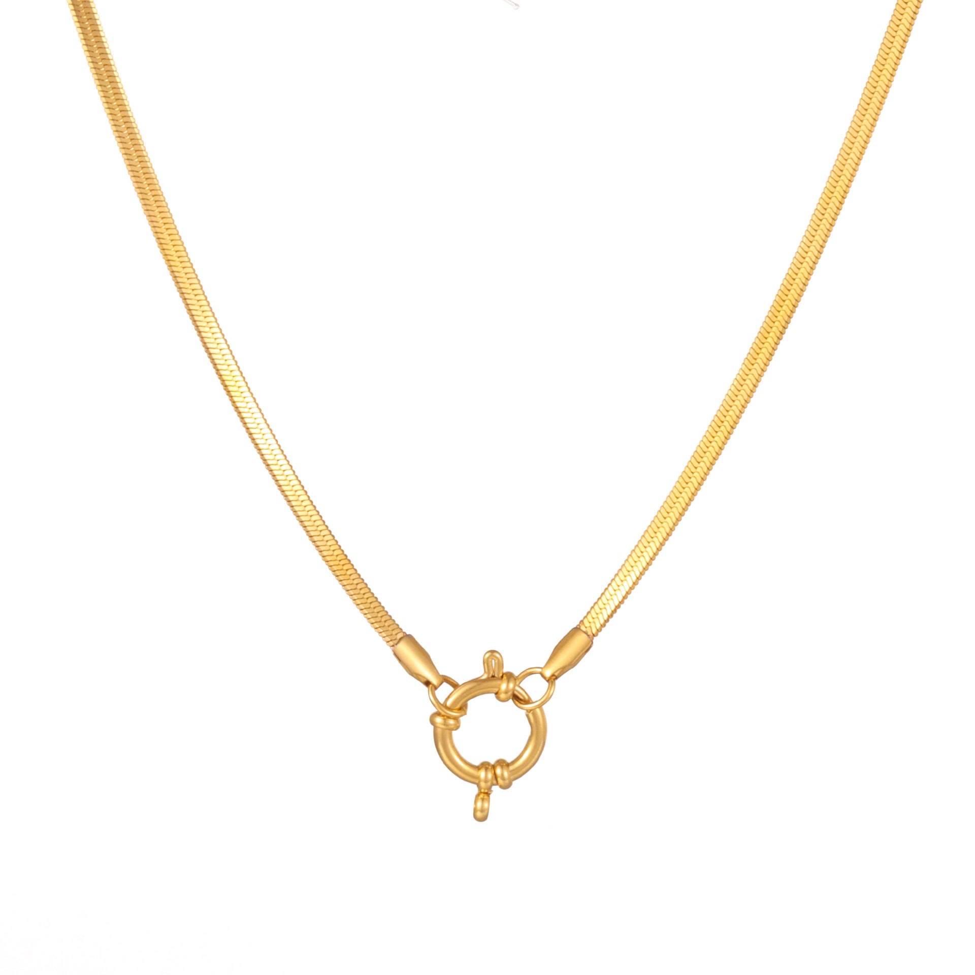 Retro Geometric Titanium Steel Pendant Necklace with 18k Gold Plated Blade Chain