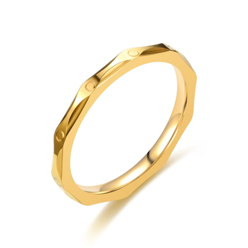 Rhombus 18K Gold Plated Stainless Steel Geometric Engraved Ring