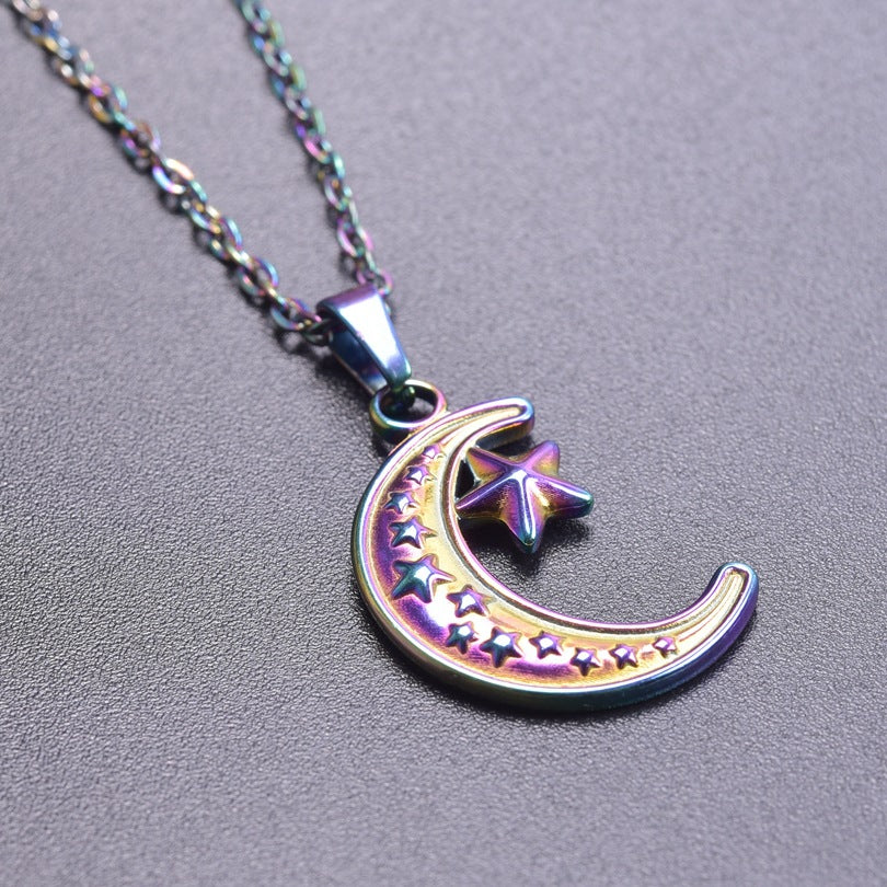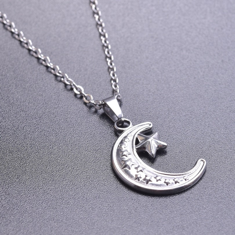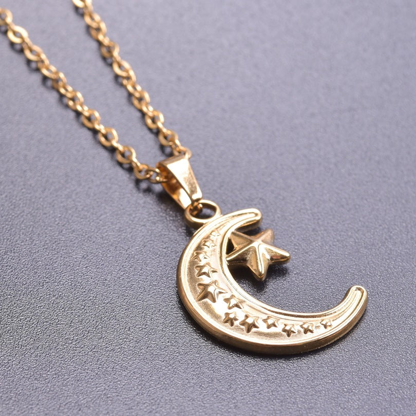 Simple Moon and Star 18K Gold Plated Stainless Steel Pendant Necklace