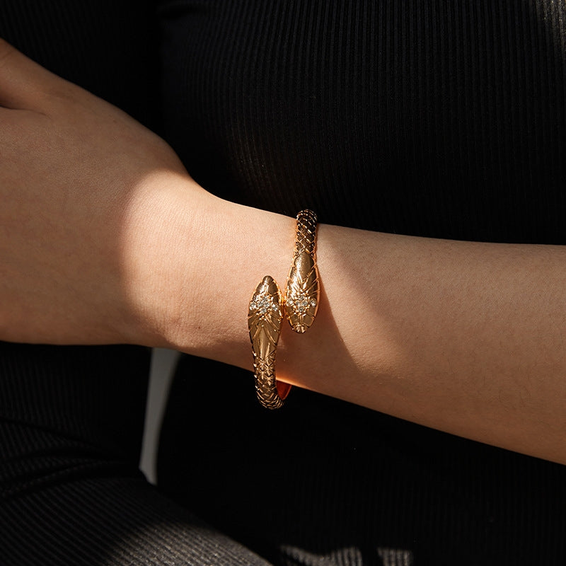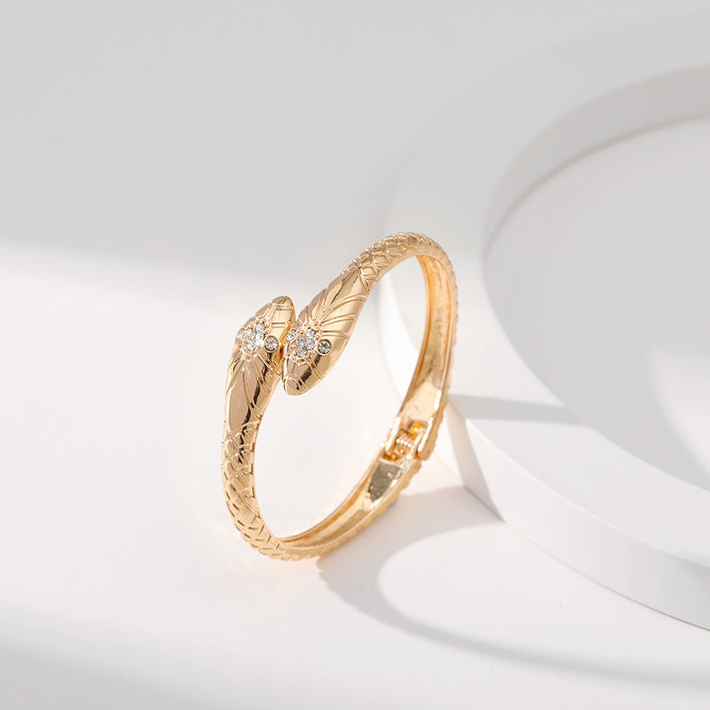Elegant Snake Design Rhinestone Alloy Bangle Bracelet for Women
