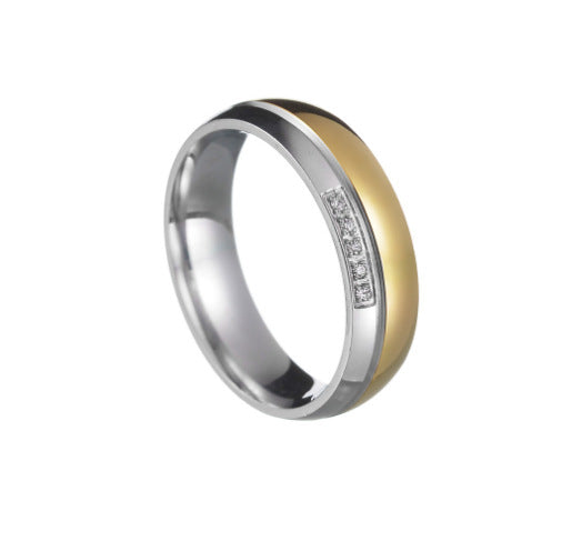 Geometric Color Block Rhinestone Inlay Stainless Steel Couple Rings
