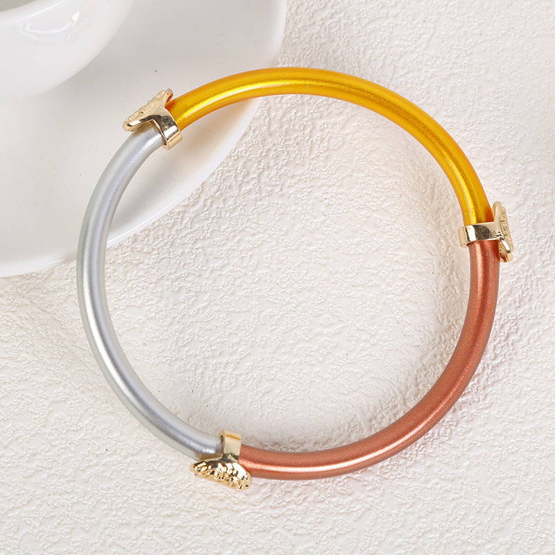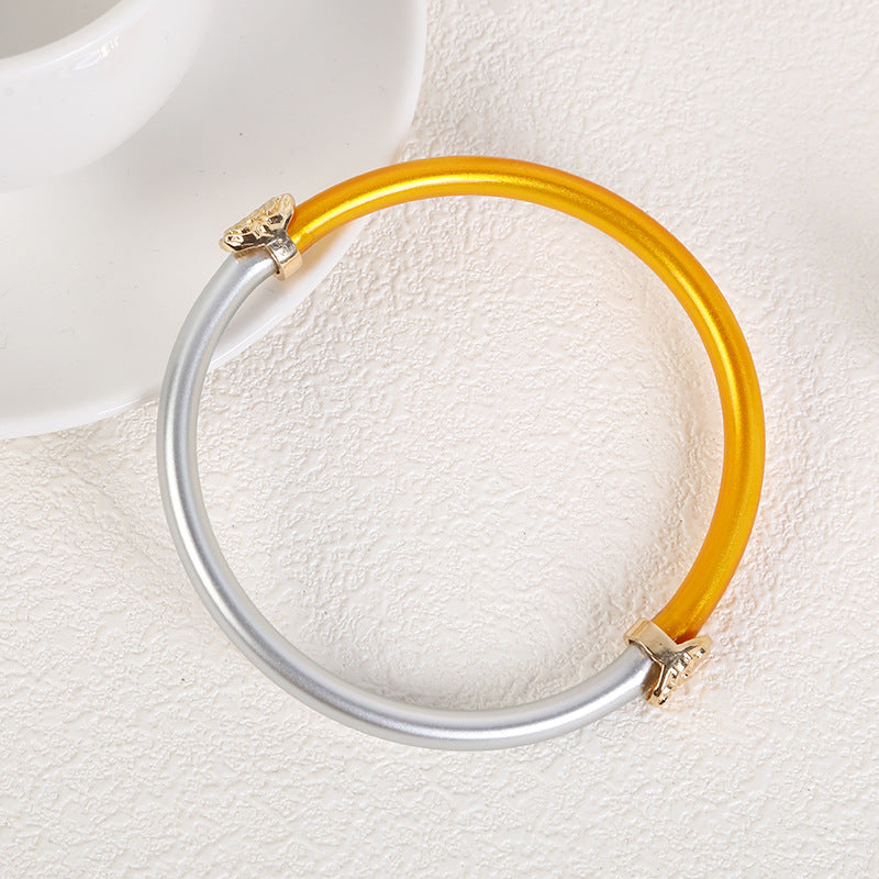 Wholesale Simple Style Round Silicone Buddhist Bangle with Bowknot Ribbon Alloy Set Bracelet 65mm