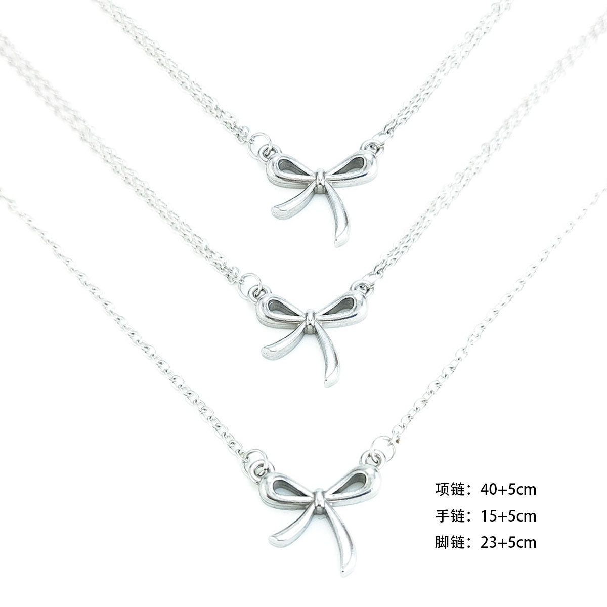 Streetwear Bow Knot 18k Gold Plated Stainless Steel Jewelry Set - Necklace, Bracelet, Anklet