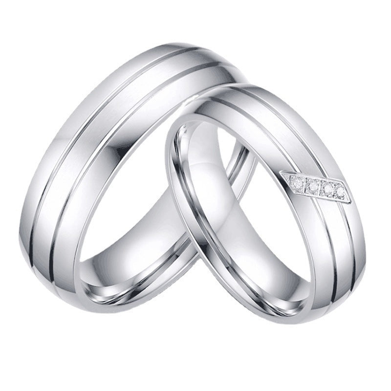 Wholesale Fashion Stainless Steel Couple Ring with Inlaid Diamond