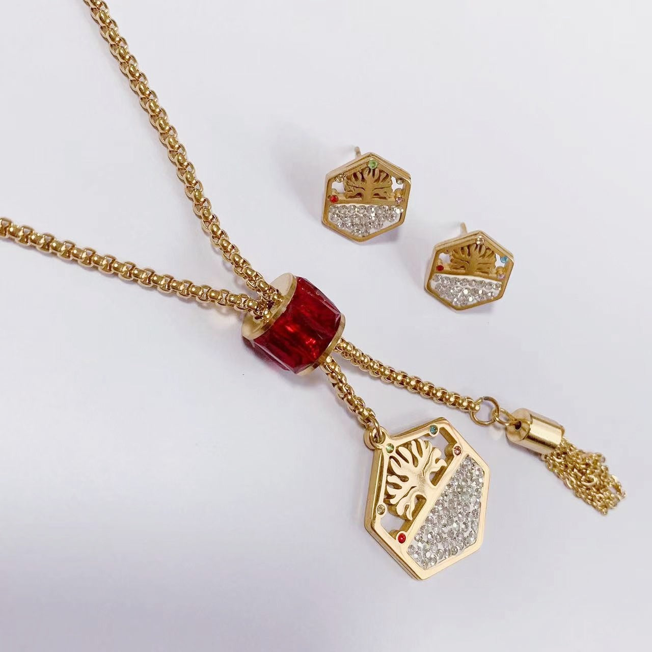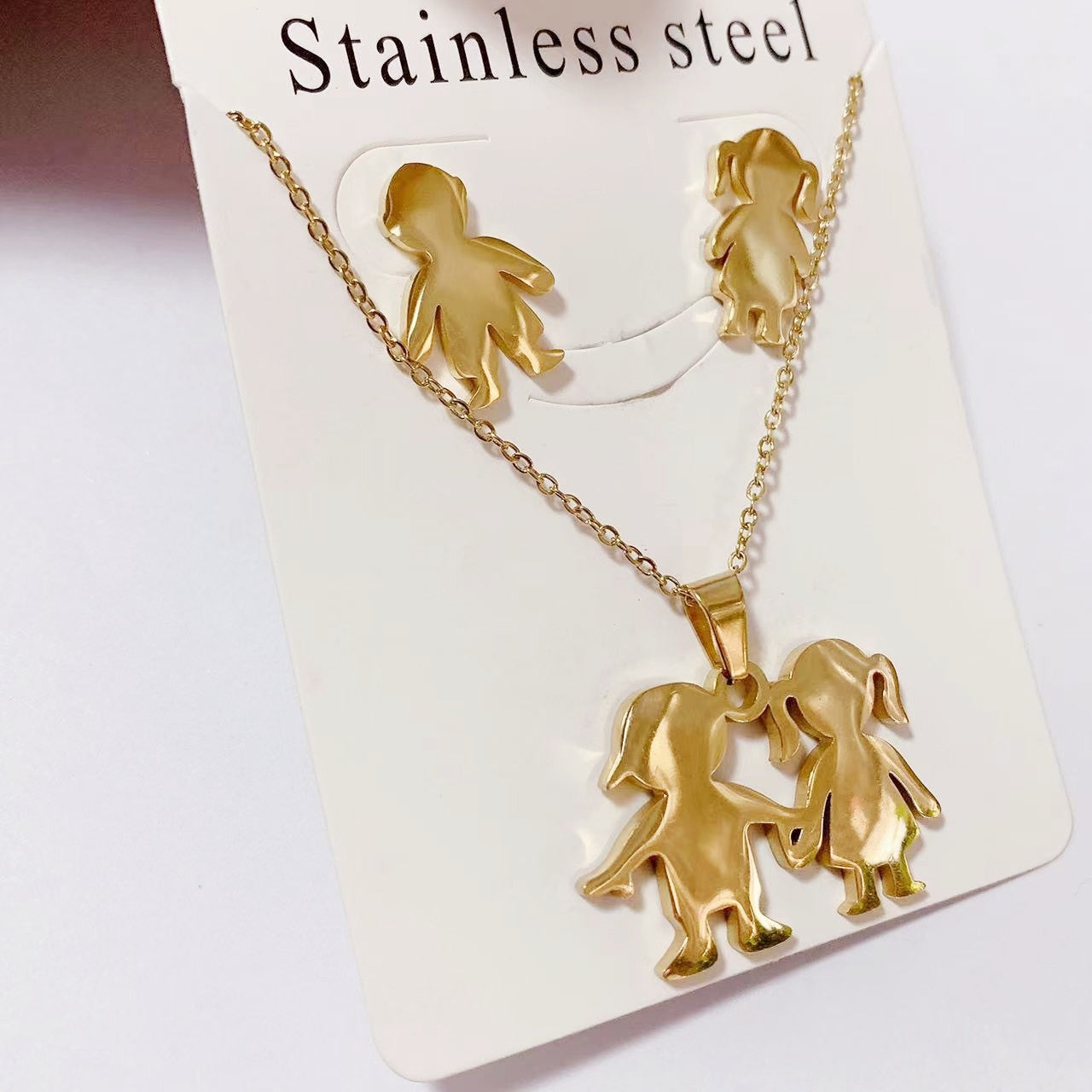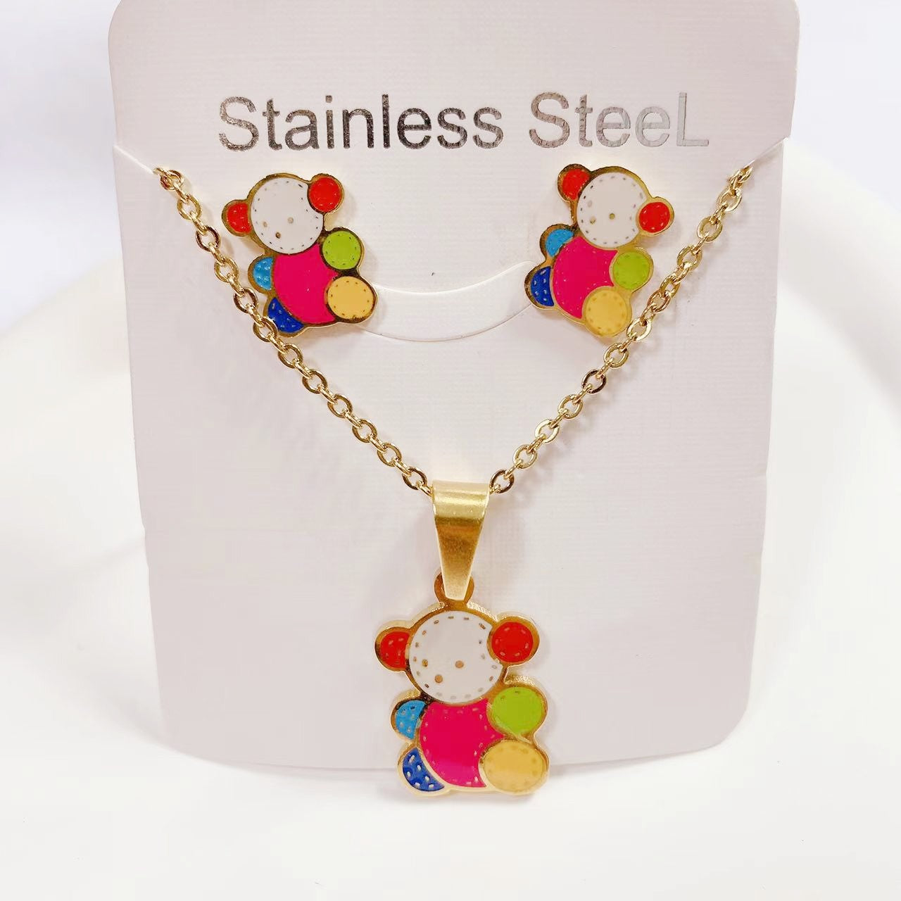 Sweet Cartoon Titanium Steel Necklace and Earrings Set - Fashionable and Versatile Jewelry