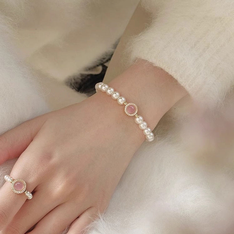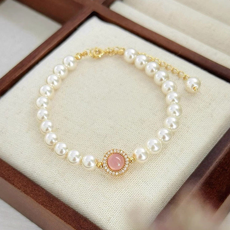 14K Gold Plated Zircon Imitation Pearl Beaded Bracelet