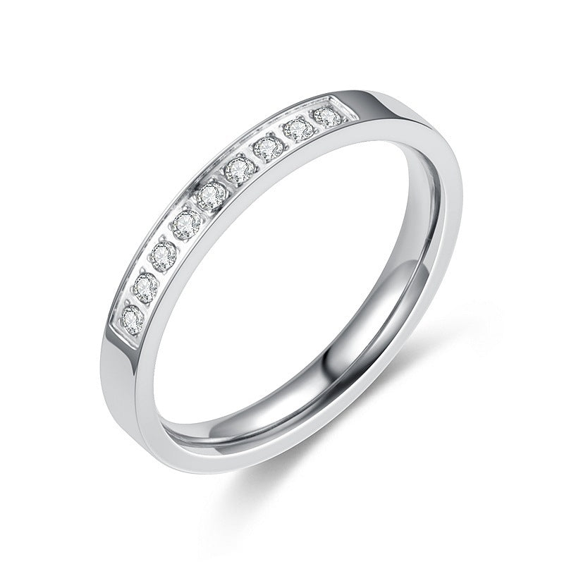 U Shape Stainless Steel Zircon Ring 3mm Rose Gold Women's Band
