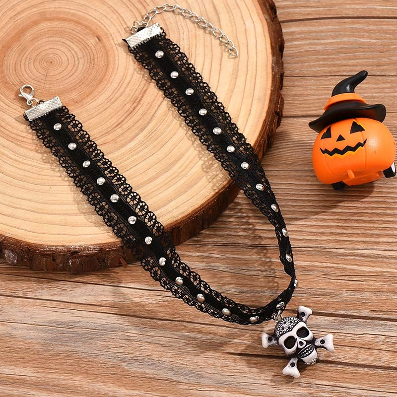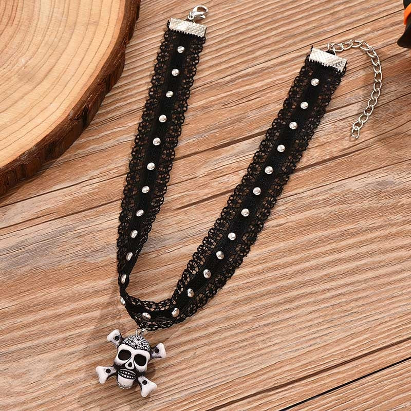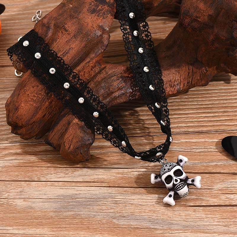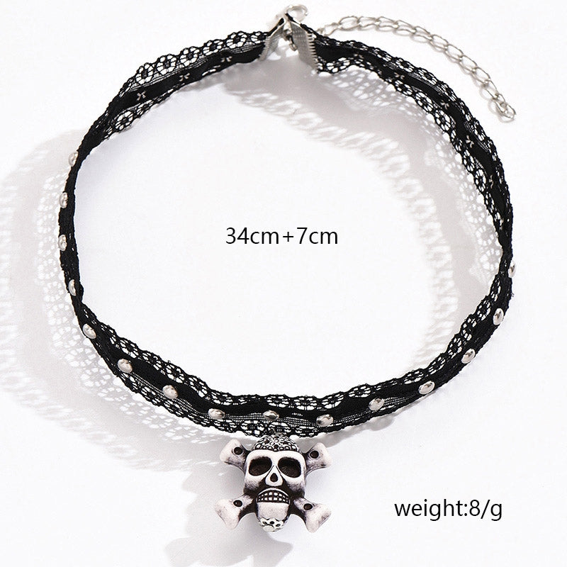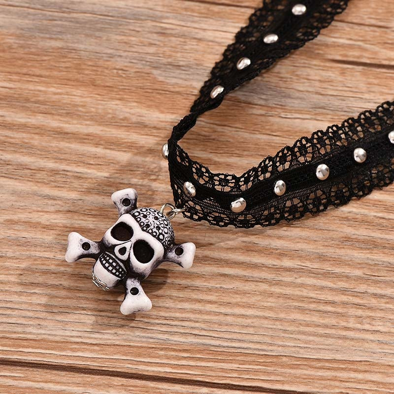 Gothic Skull Pendant Color Block Resin Choker Necklace