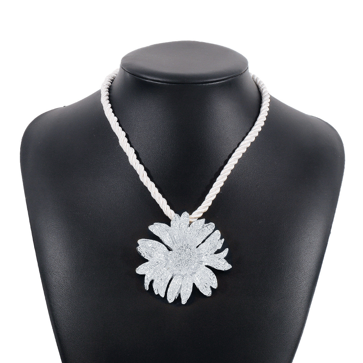 Vintage Sunflower Pendant Necklace and Earrings Set - Alloy Braid Rope Design
