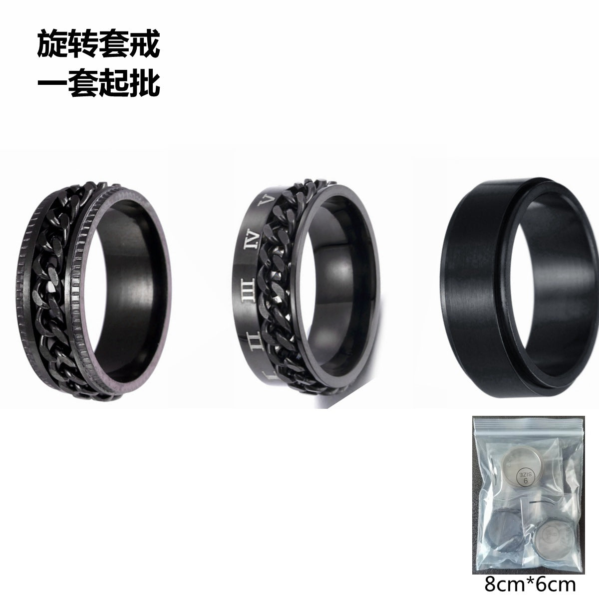 Wholesale Rotatable Roman Numerals Titanium Steel Chain Ring Set for Men