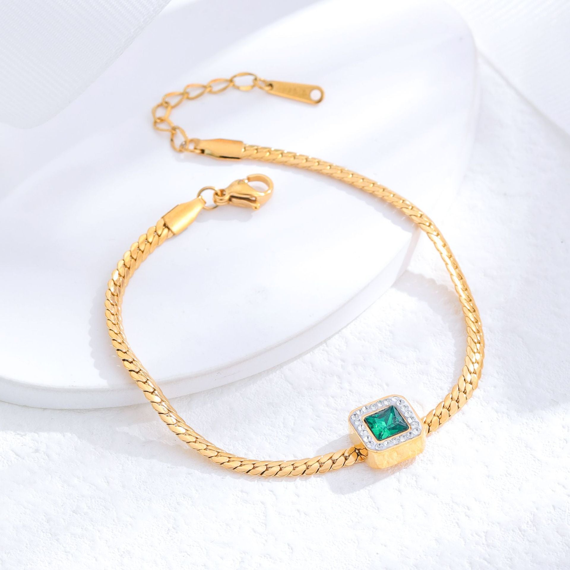 Vintage Rectangle Titanium Steel 24K Gold Plated Emerald Zircon Bracelet