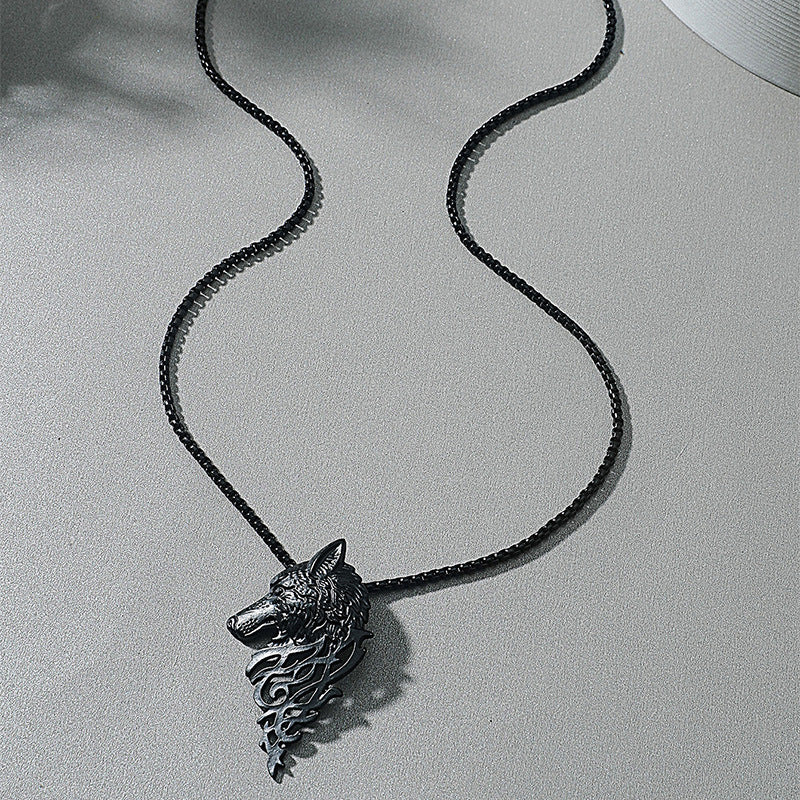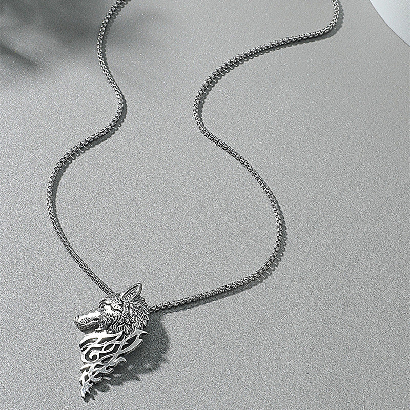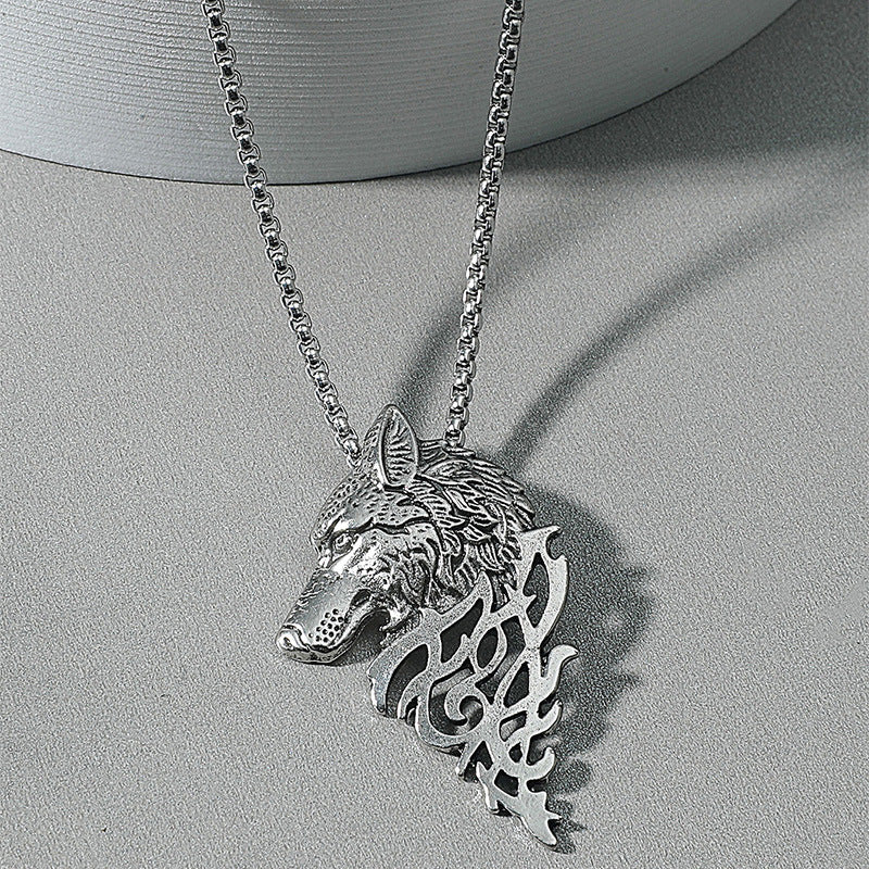 Wolf Head Pendant Titanium Steel Necklace - Vintage Style Men's Animal Pendant Hip Hop Fashion Accessory