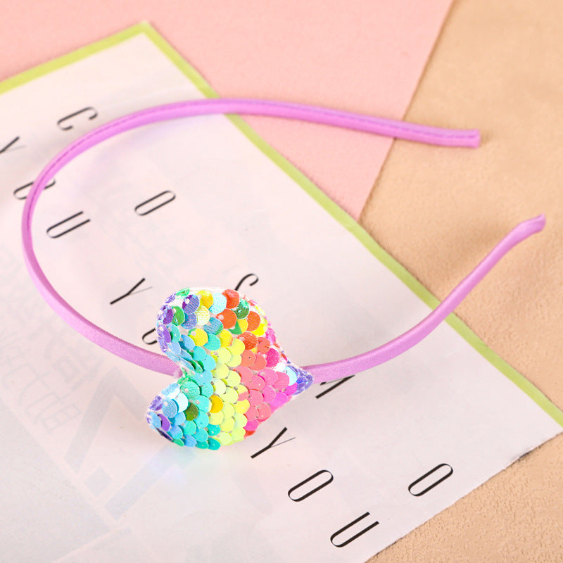 Women's Heart Shape Sequin Hair Clip and Hair Band Set