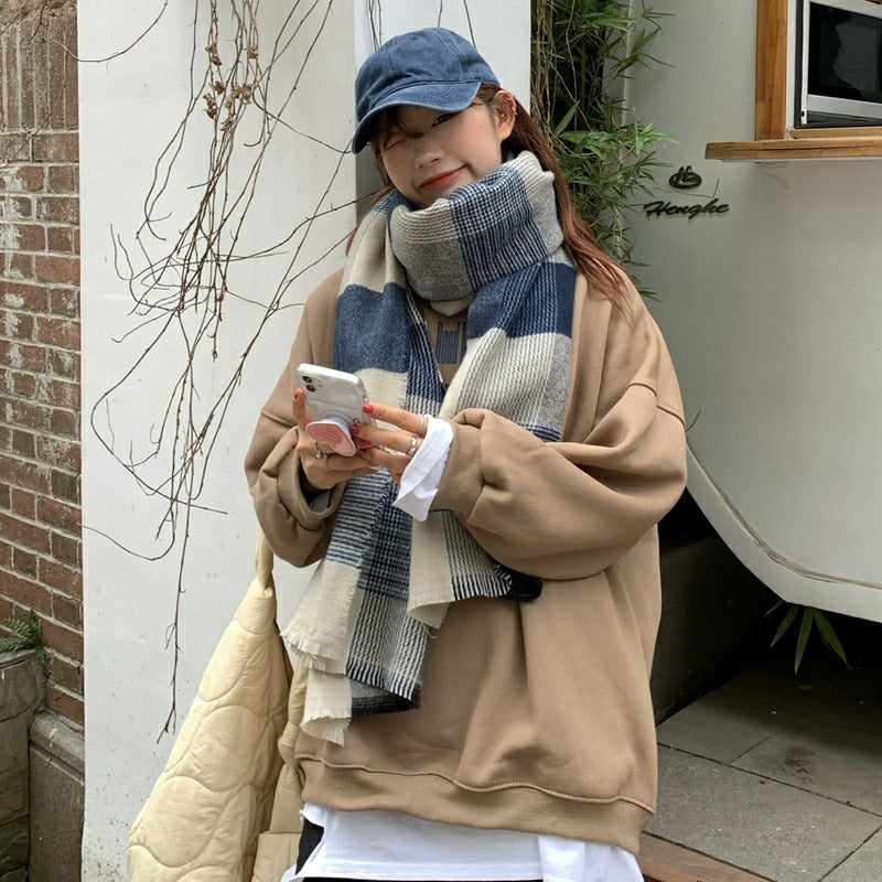 Women's Korean Style Plaid Imitation Cashmere Scarf Shawl