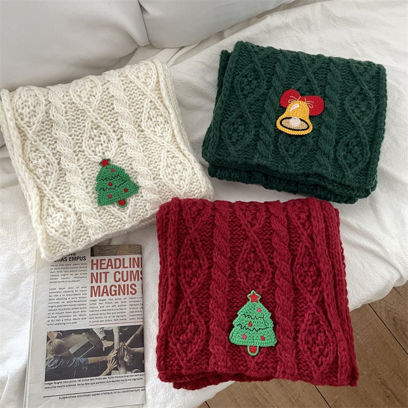 Women's Christmas Tree Yarn Scarf - Red Knitted Winter Scarf for Women and Couples