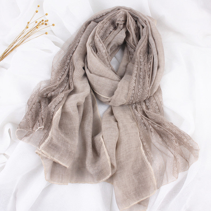 Women's Elegant Lace Trim Cotton Linen Scarf Shawl