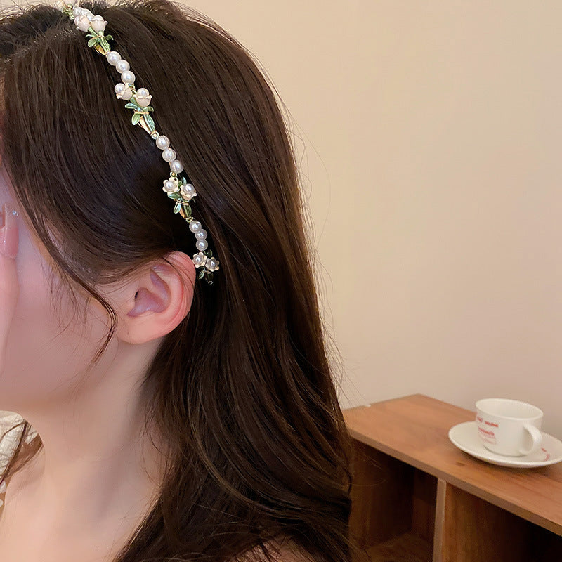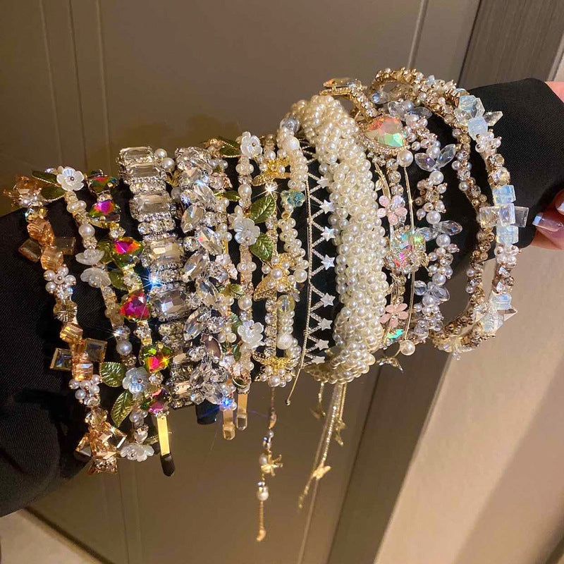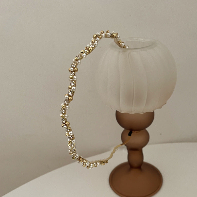 Women's Elegant Pearl and Diamond Flower Bow Hairband