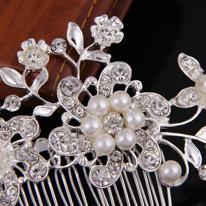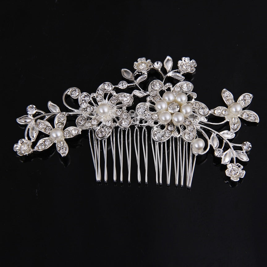 Women's Floral Alloy Hair Comb with Rhinestone and Pearl Bridal Accessory